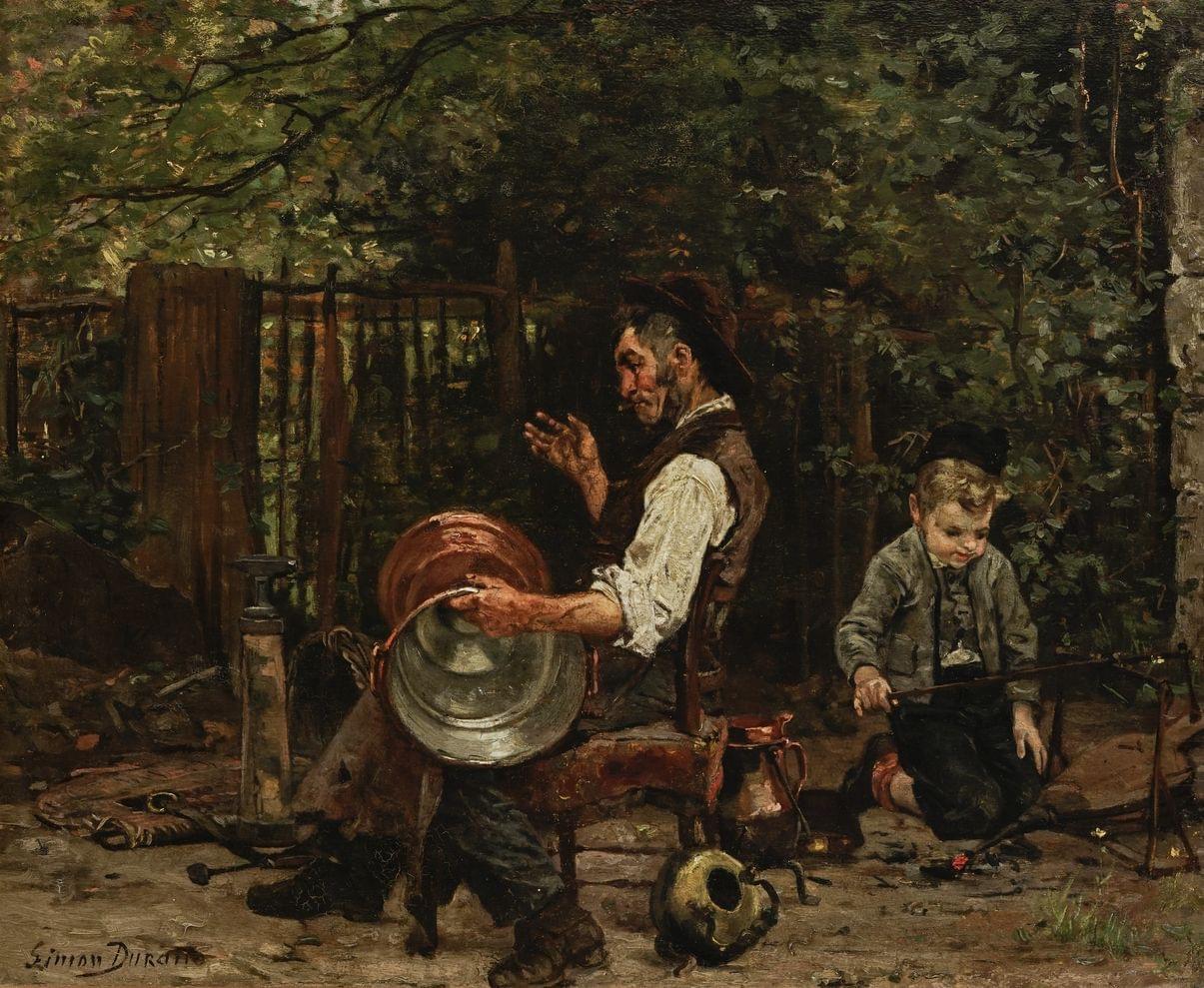 Le chaudronnier, huile sur panneau, signée, 38x46 cm