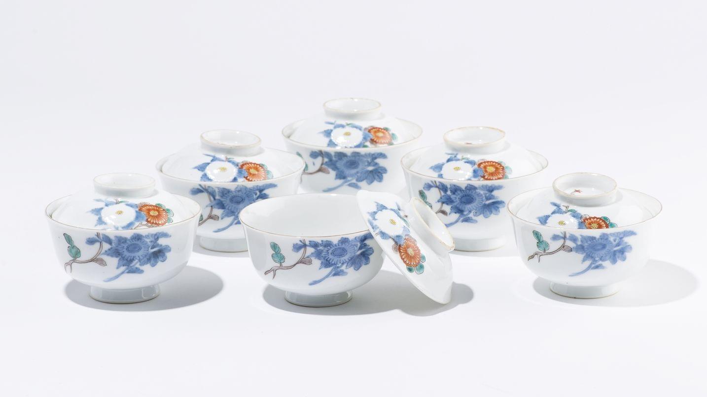 Porcelaine à motif de fleurs, Japon, XIXe s, D 10,5 cm