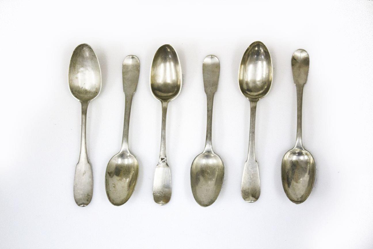 3289. Six cuillères, l'une gravée "Abraham Gallatin",