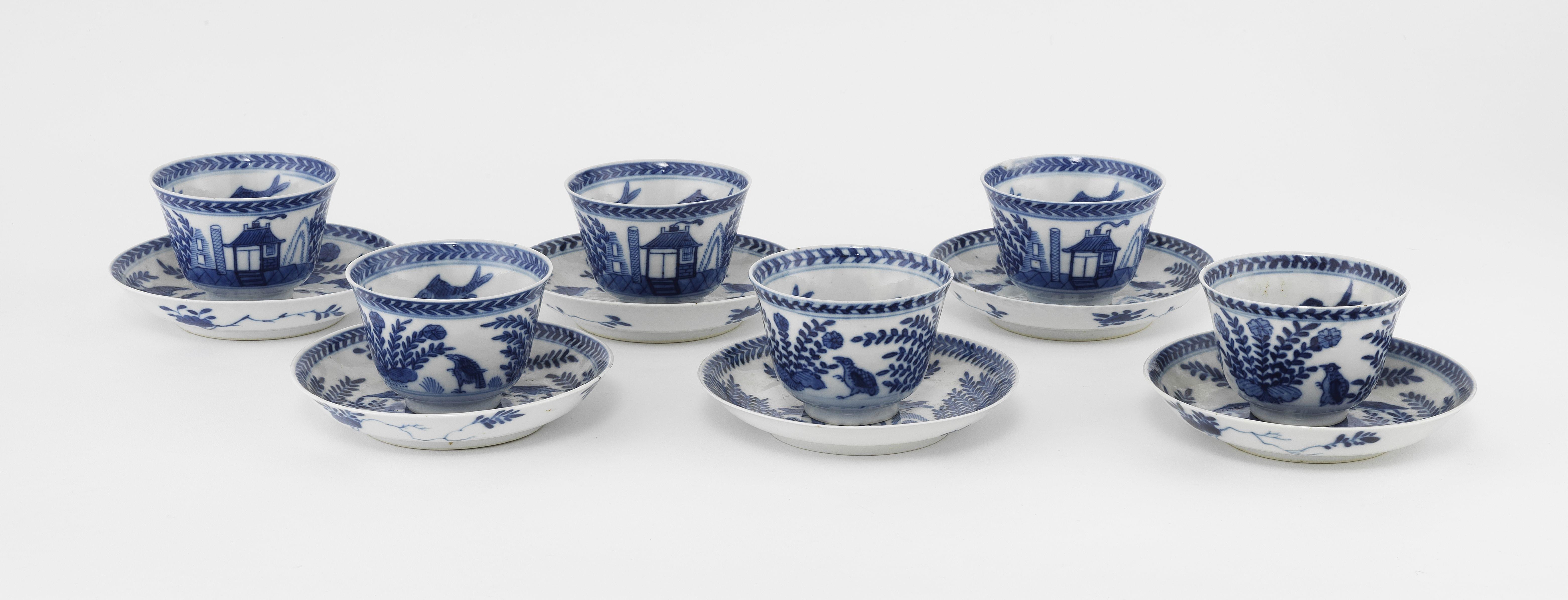 Porcelaine émaillée bleu blanc à décor de paysages polychromes,...