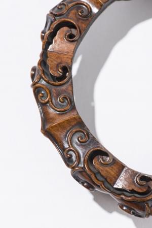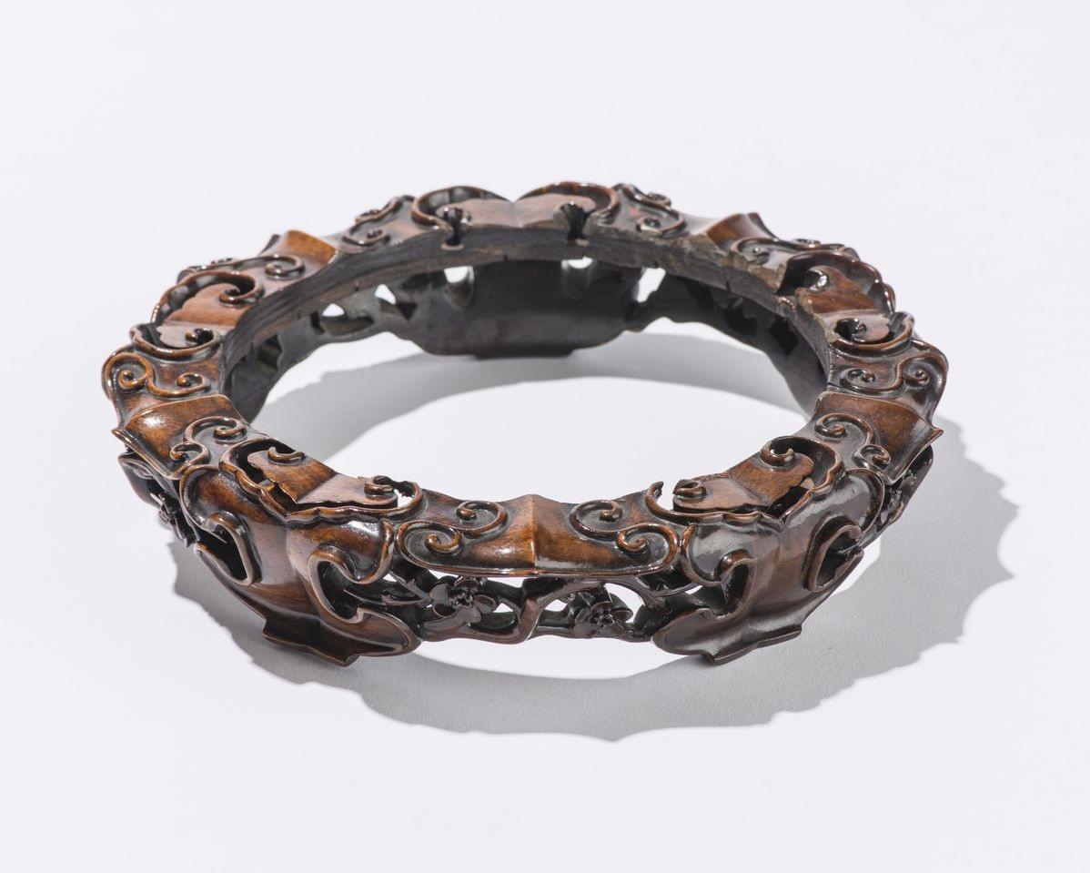 Bois sculpté et ajouré à décor de nuées et fleurs de prunus, Chine, dynastie Qing (1644-1912), D 19 cm