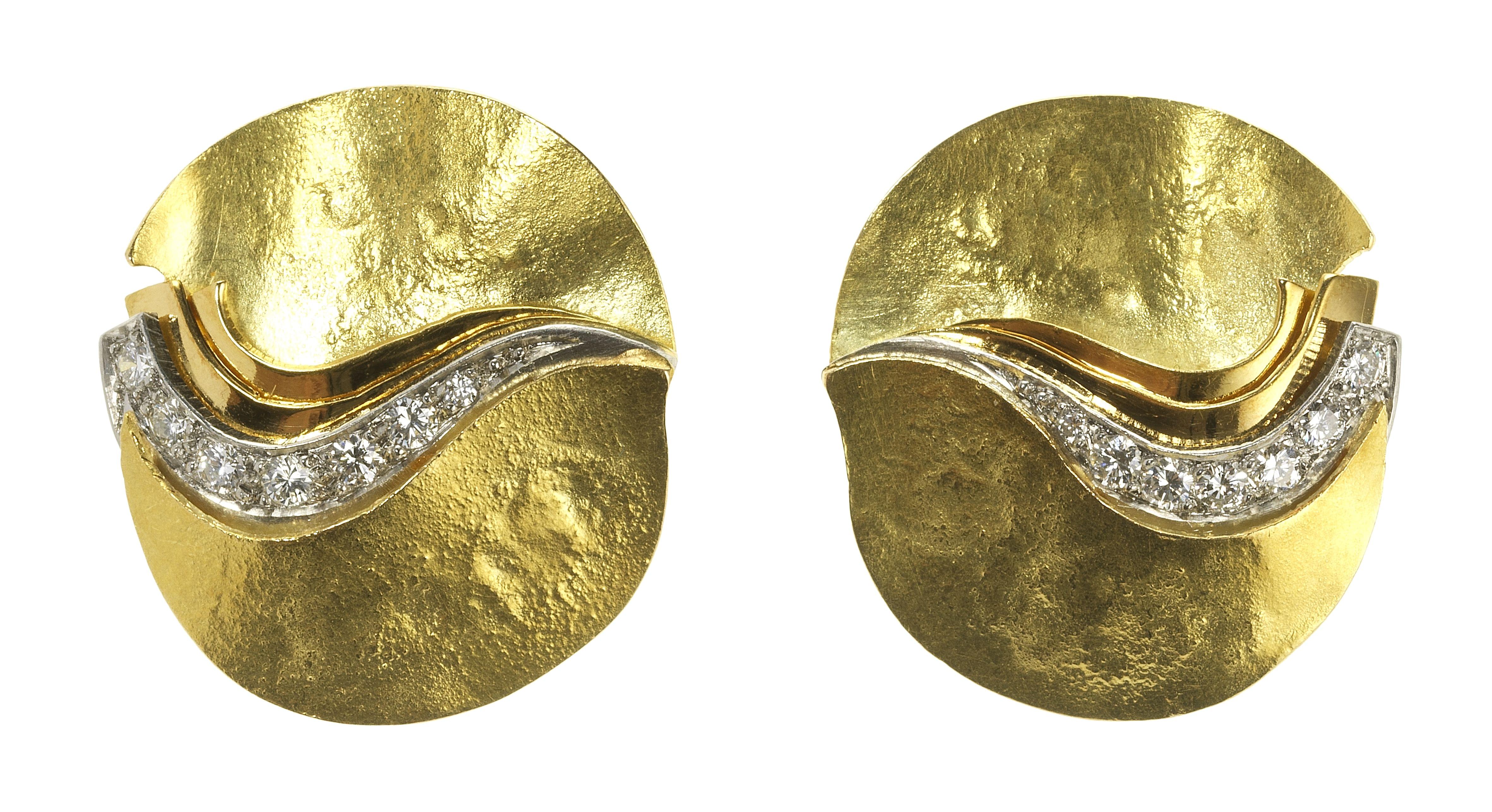 Soulignés d'une ligne de diamants, or 750, D env. 2 cm, 10 g