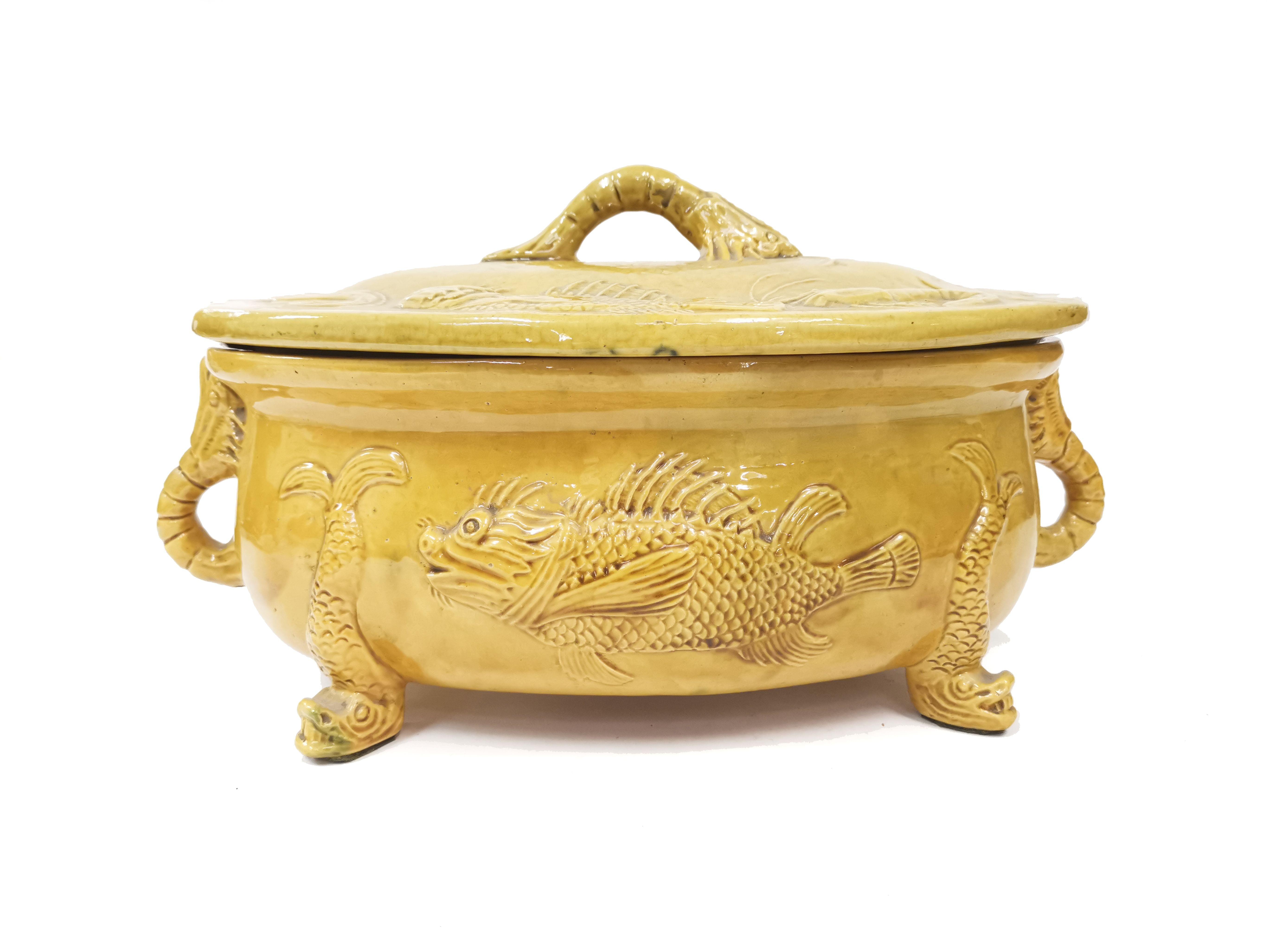 3320. Soupière sur son présentoir en faïence, Sud de la France