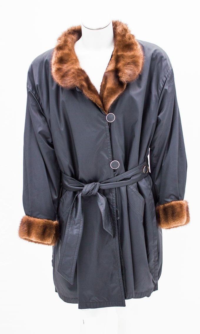 Pelisse noire à ceinture, col et poignet en vison, intérieur castorette noire
