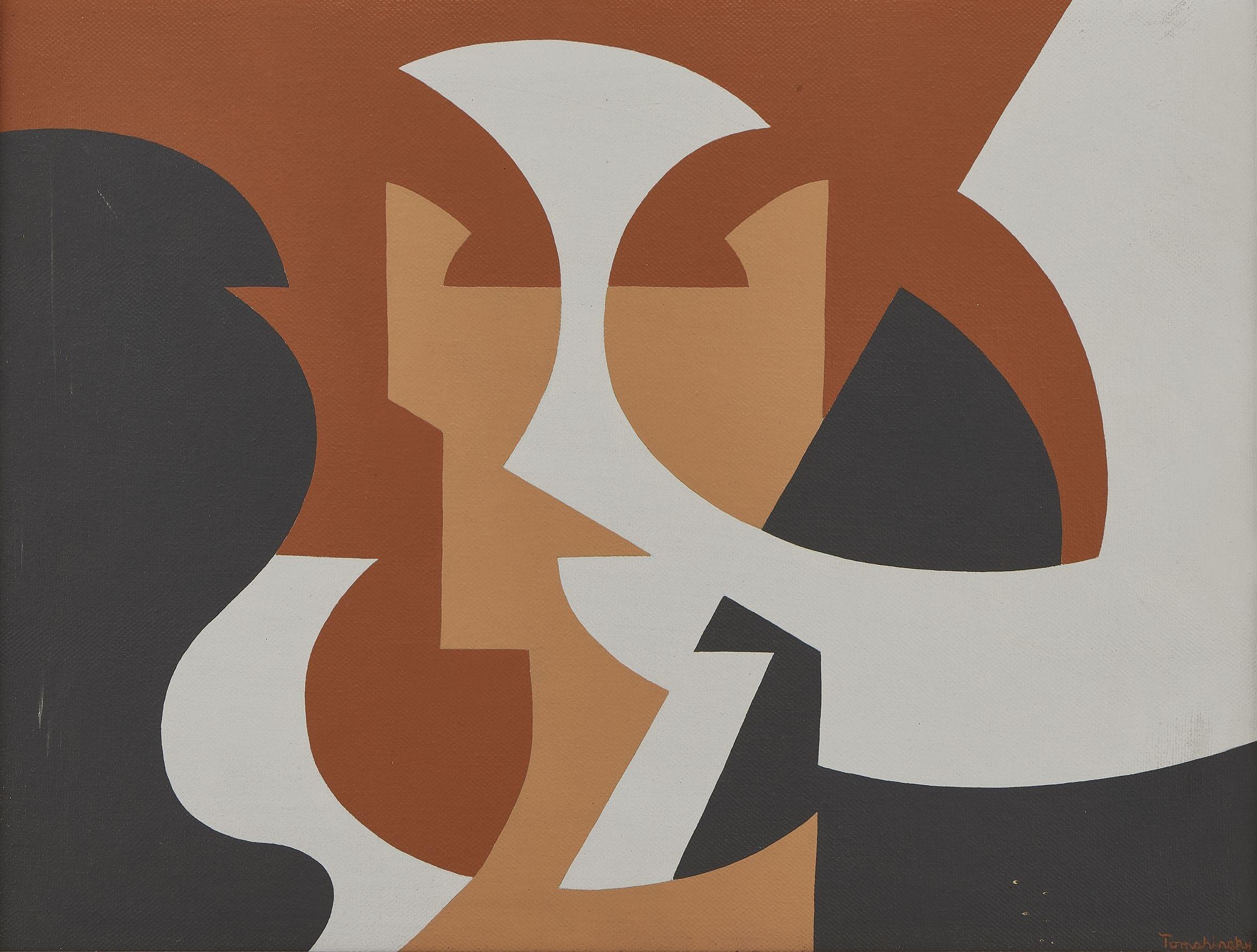 Coming through the light, acrylique sur toile, signée et datée 1971 au dos, 30x40 cm