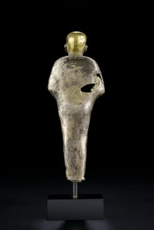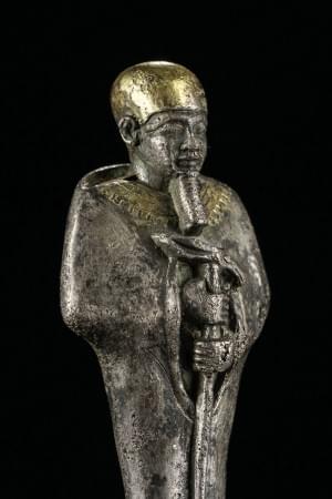 An egyptian silver with gold overlay statuette of the god Ptah, New Kingdom, dynasty 18. Provenance: Swiss private collection