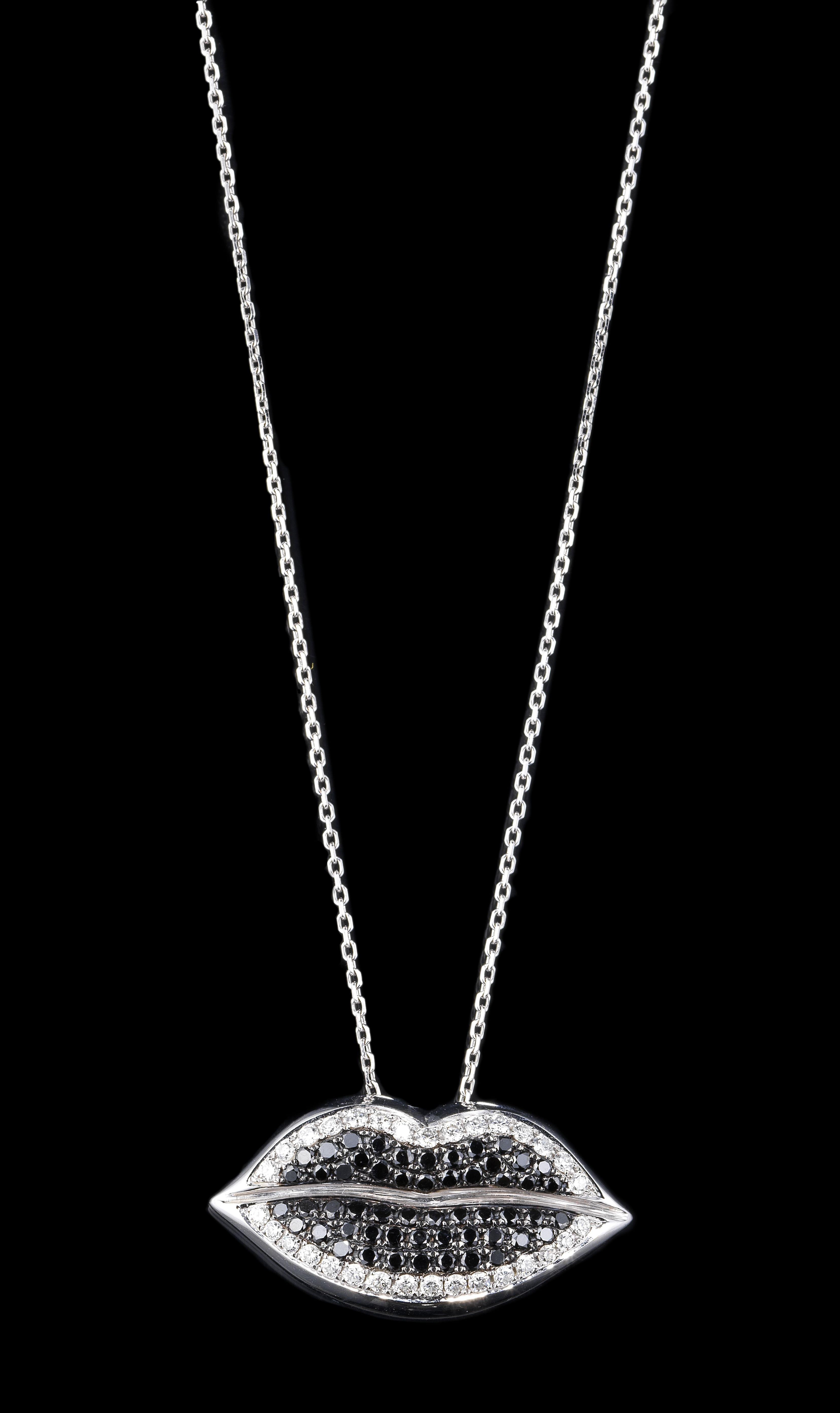 116. Stefère, collier retenant un pendentif à motif de lèvres pavées de diamants noirs entourés de diamants