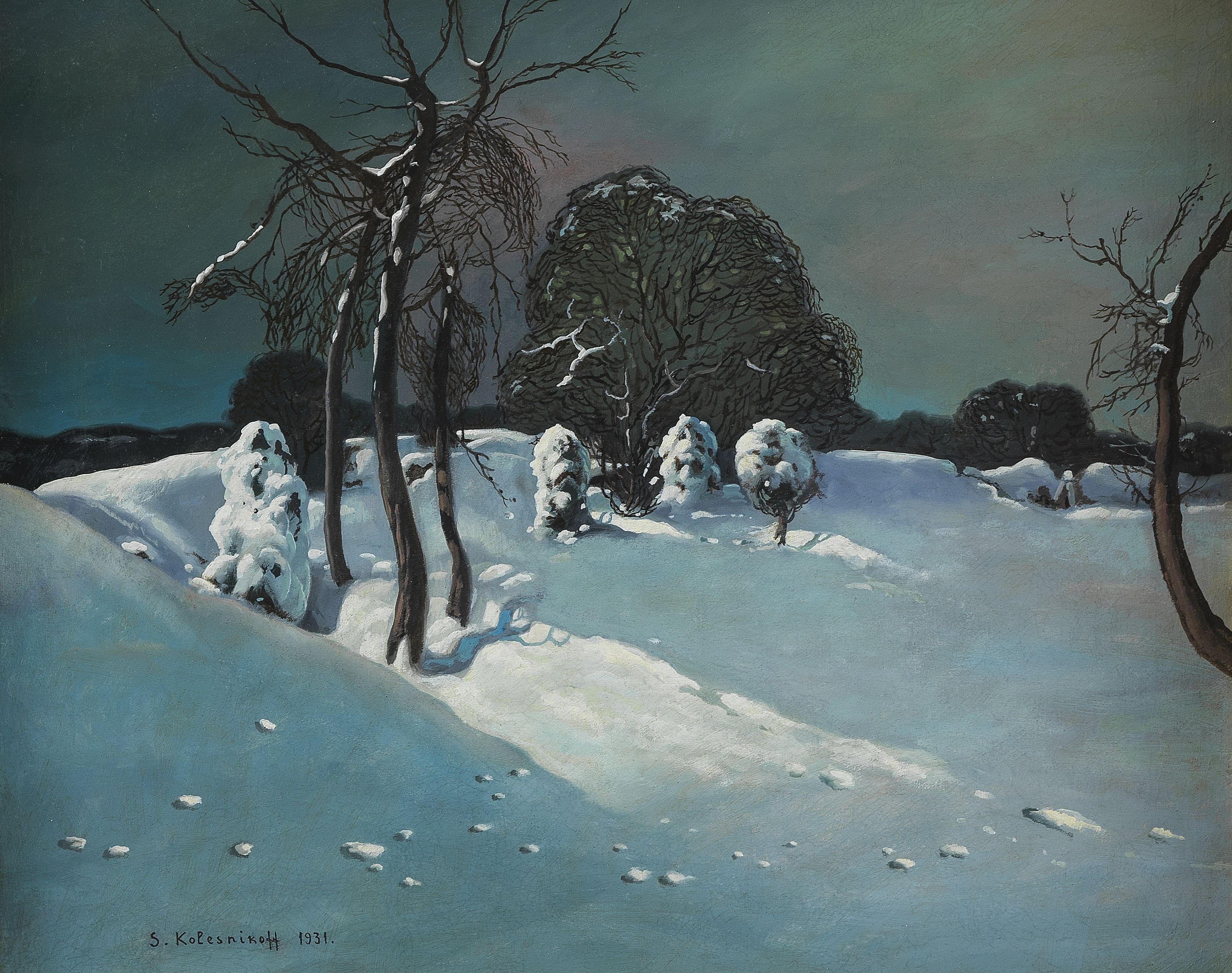 Paysage enneigé, huile sur toile, signée et datée 1931, 78x63 cm.