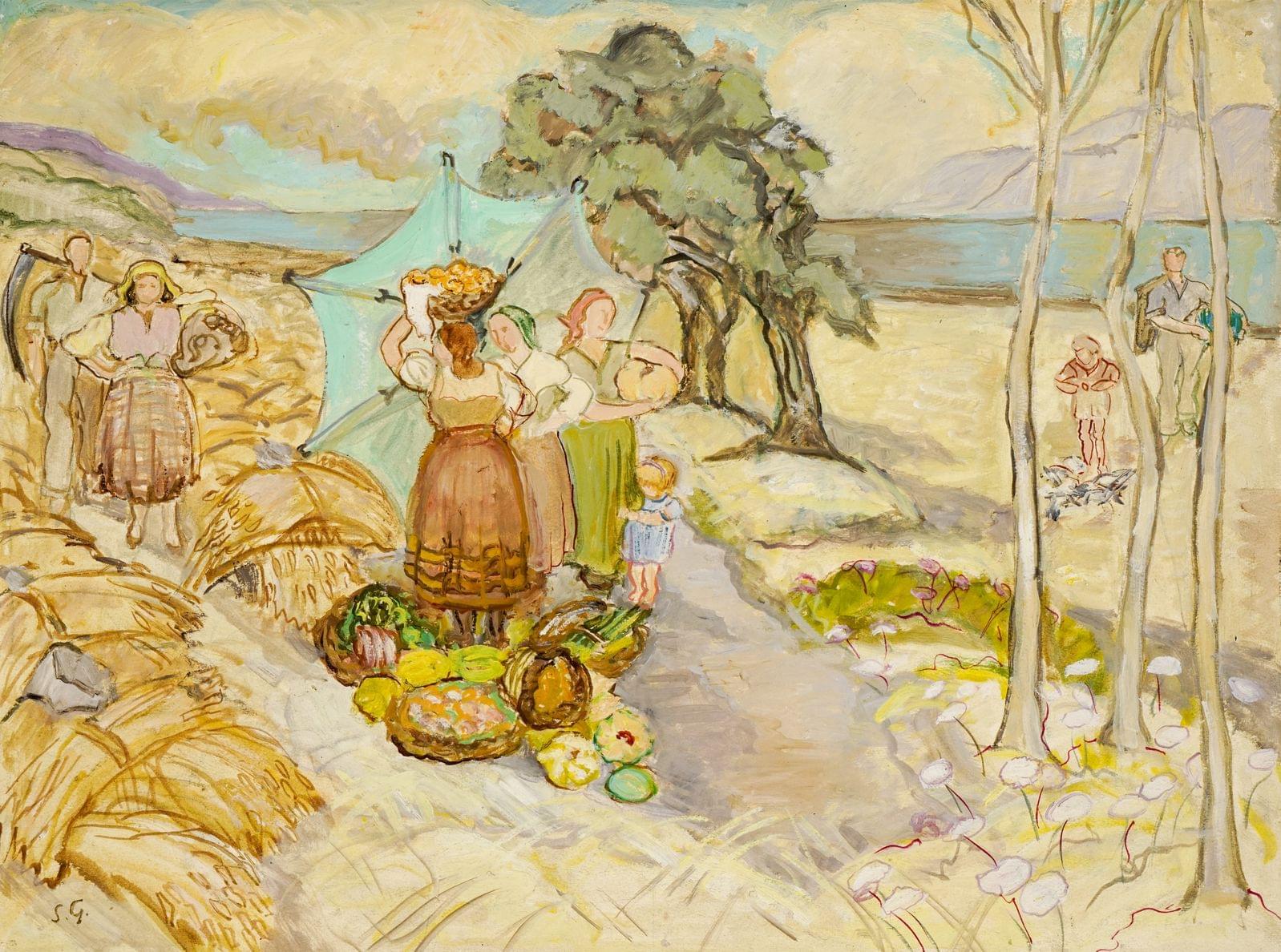 La récolte, huile sur carton, monogrammée, 43x58,5 cm