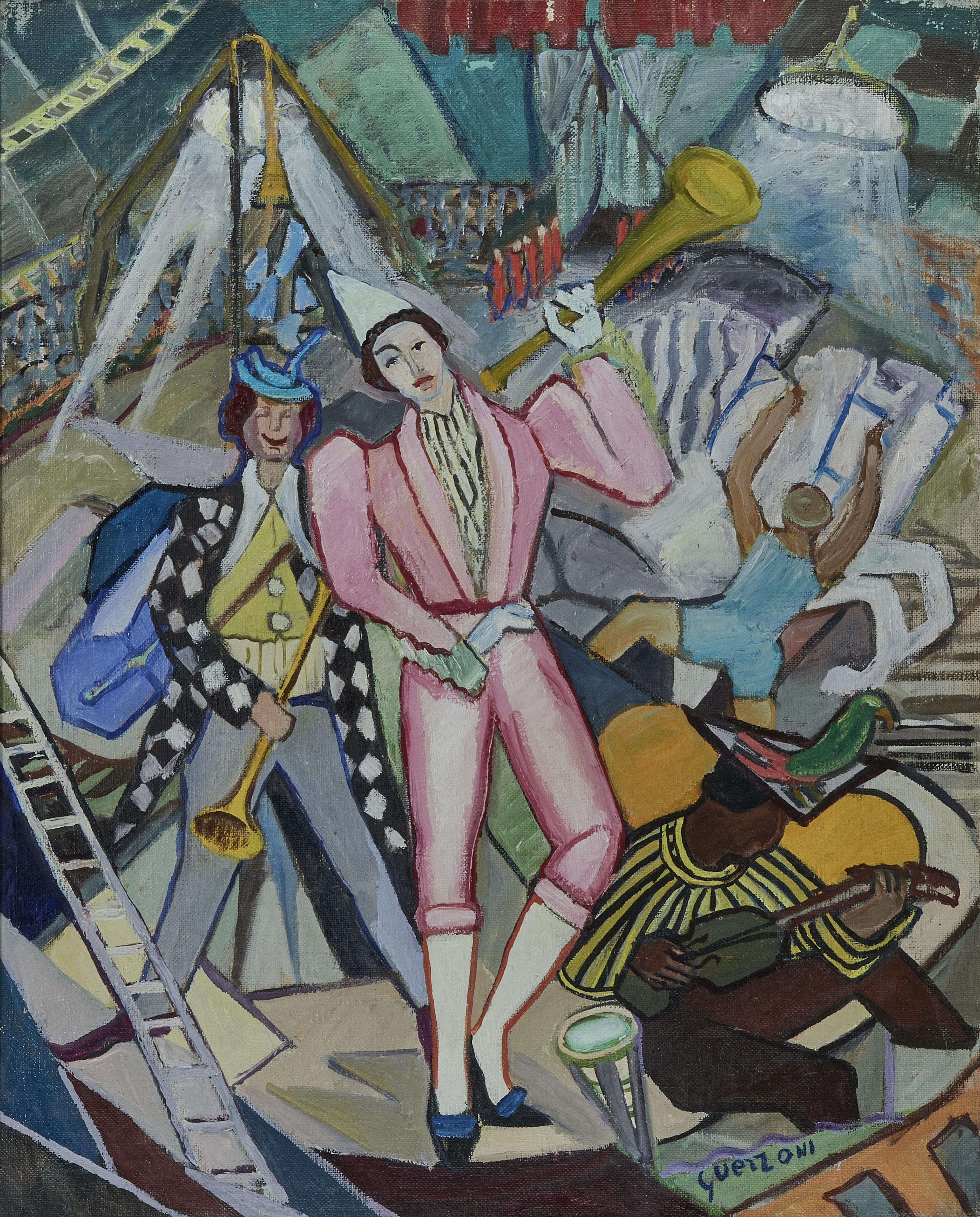 Le cirque, huile sur toile, signée, 73x60 cm