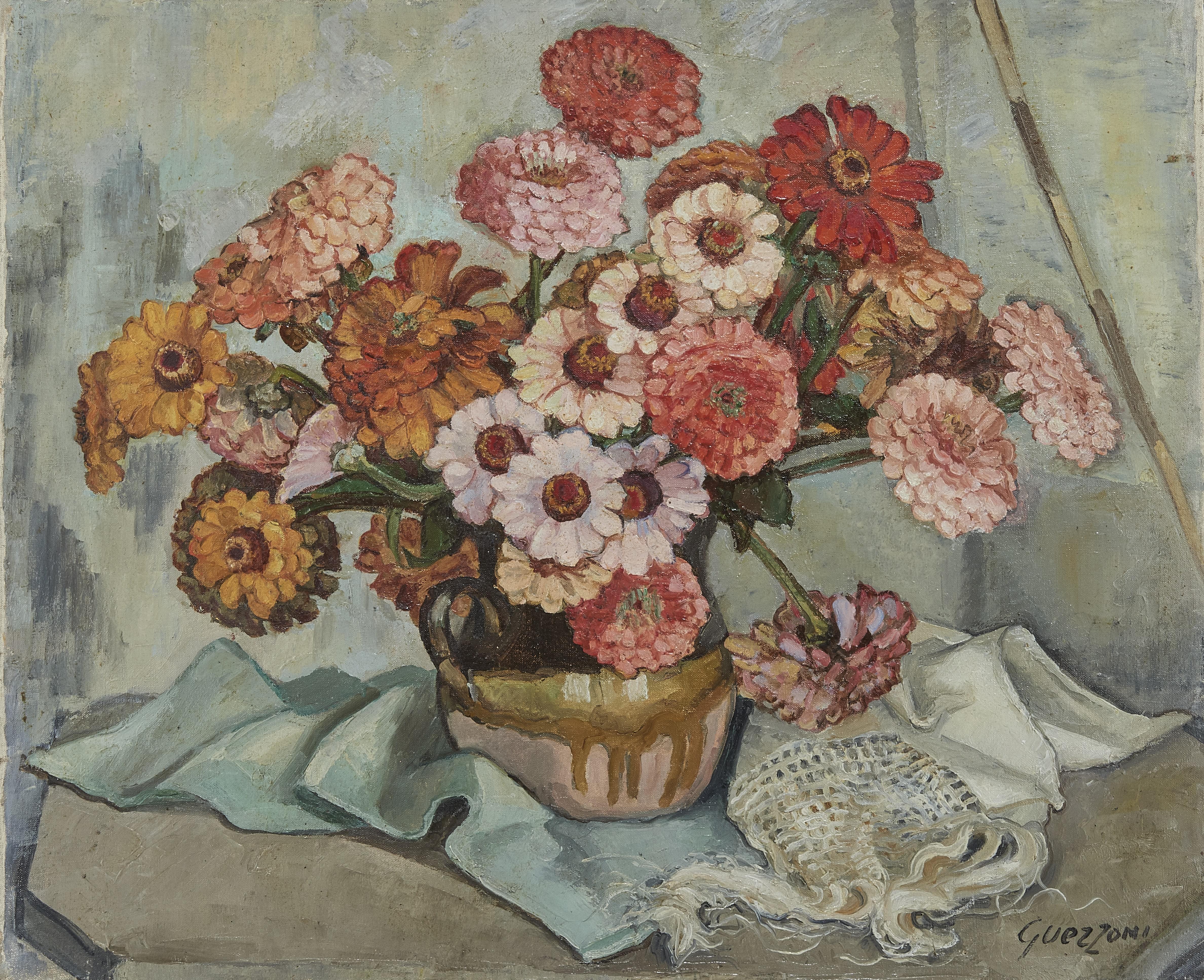 Fleurs dans un vase noir, huile sur toile, signée, 41x33 cm
