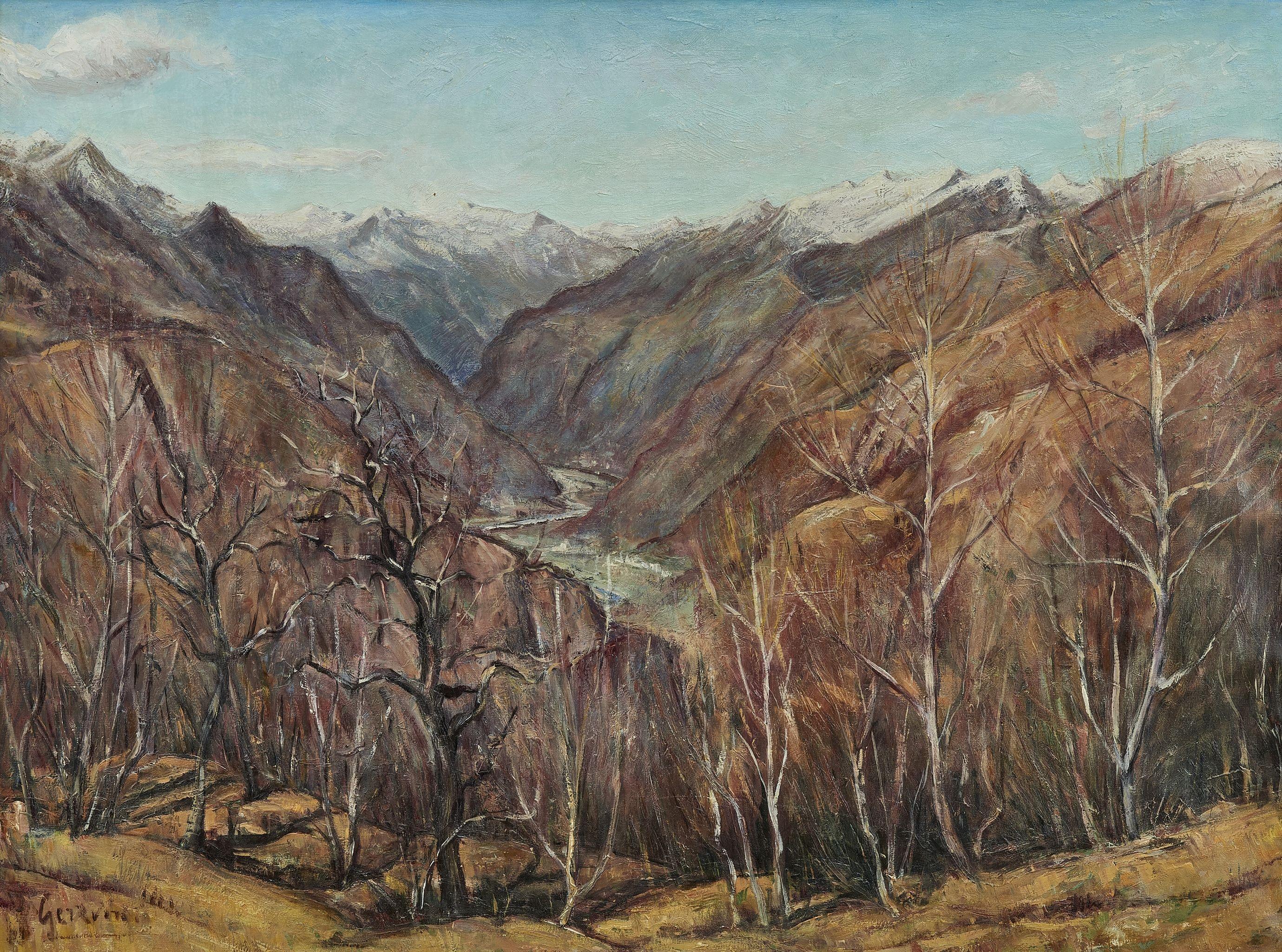 Valle Maggia, huile sur toile, signée, localisée et datée 1951 au dos, 60x81 cm