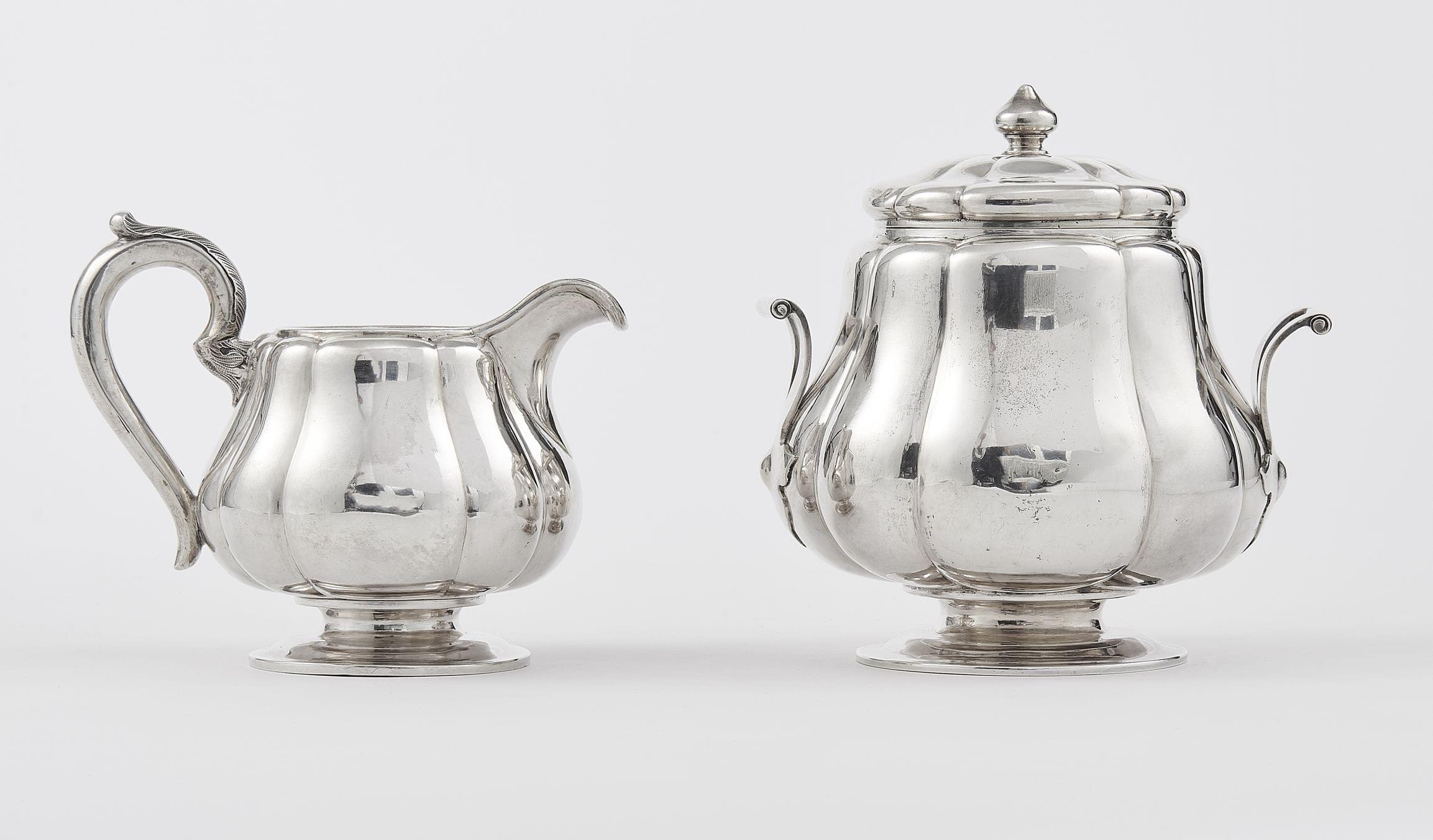 3665. Crémier piriforme à décor repoussé de guirlandes