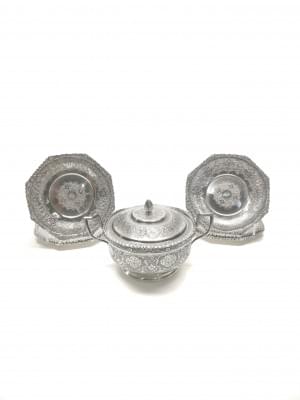 3751. 6 tasses et un sucrier à motifs d'arabesques,