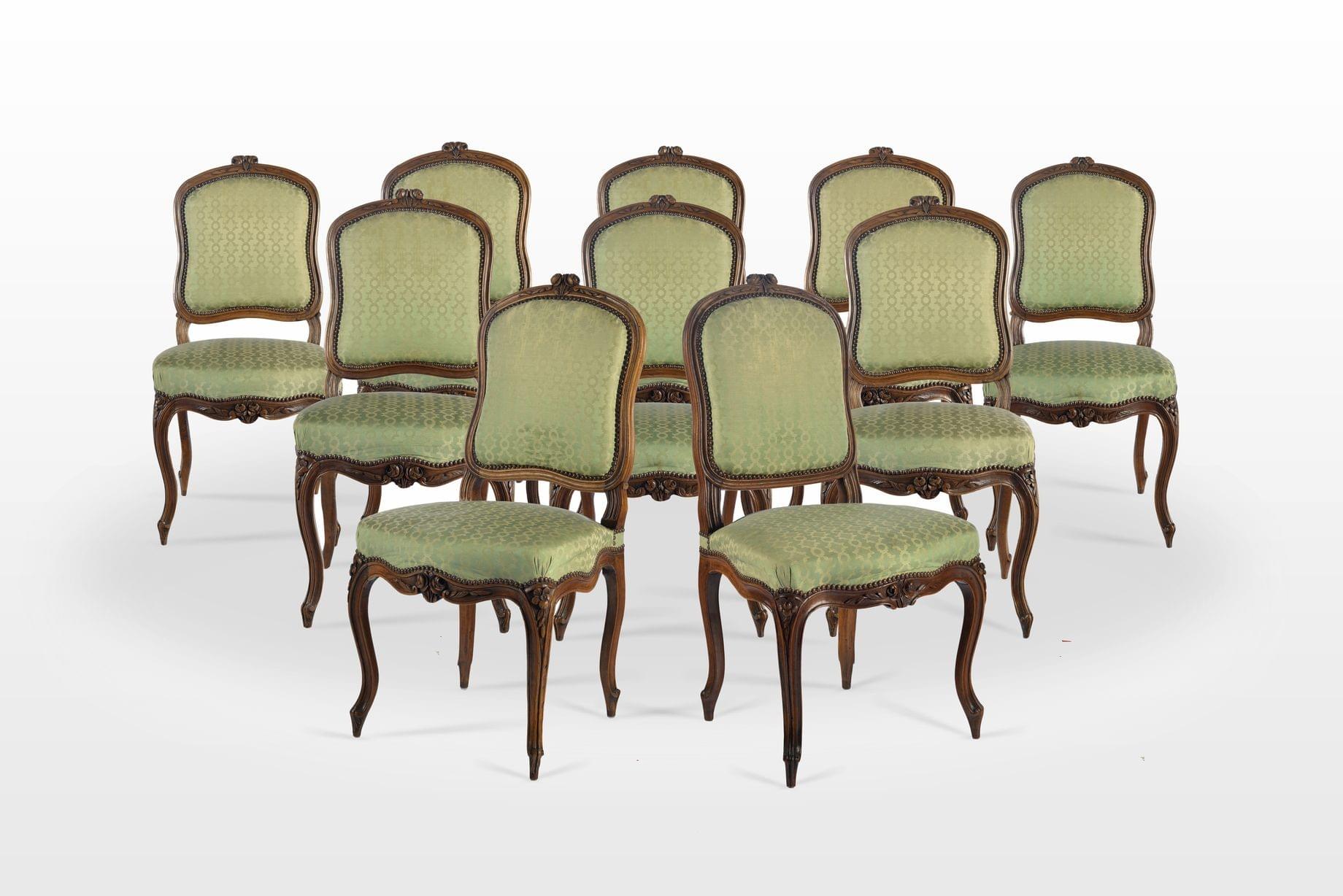 197. 12 assiettes creuses festonnées à bordure de filet et ruban ryth...