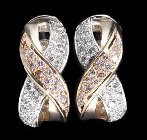 3347. Boucles d'oreilles bicolores formant un ruban entrecroisé pavées...