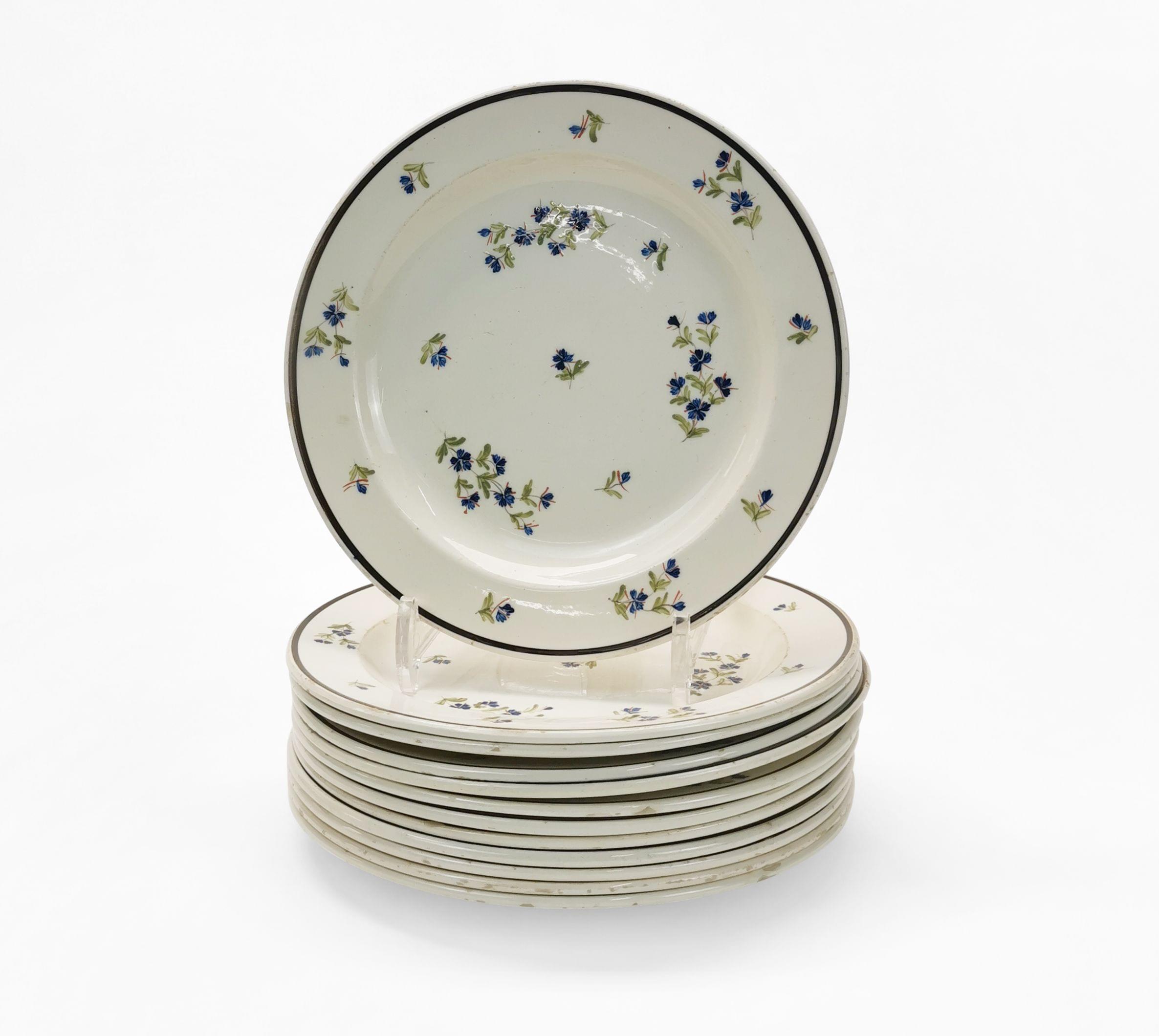 4561. Suite de 12 assiettes à motif de semis de bleuets