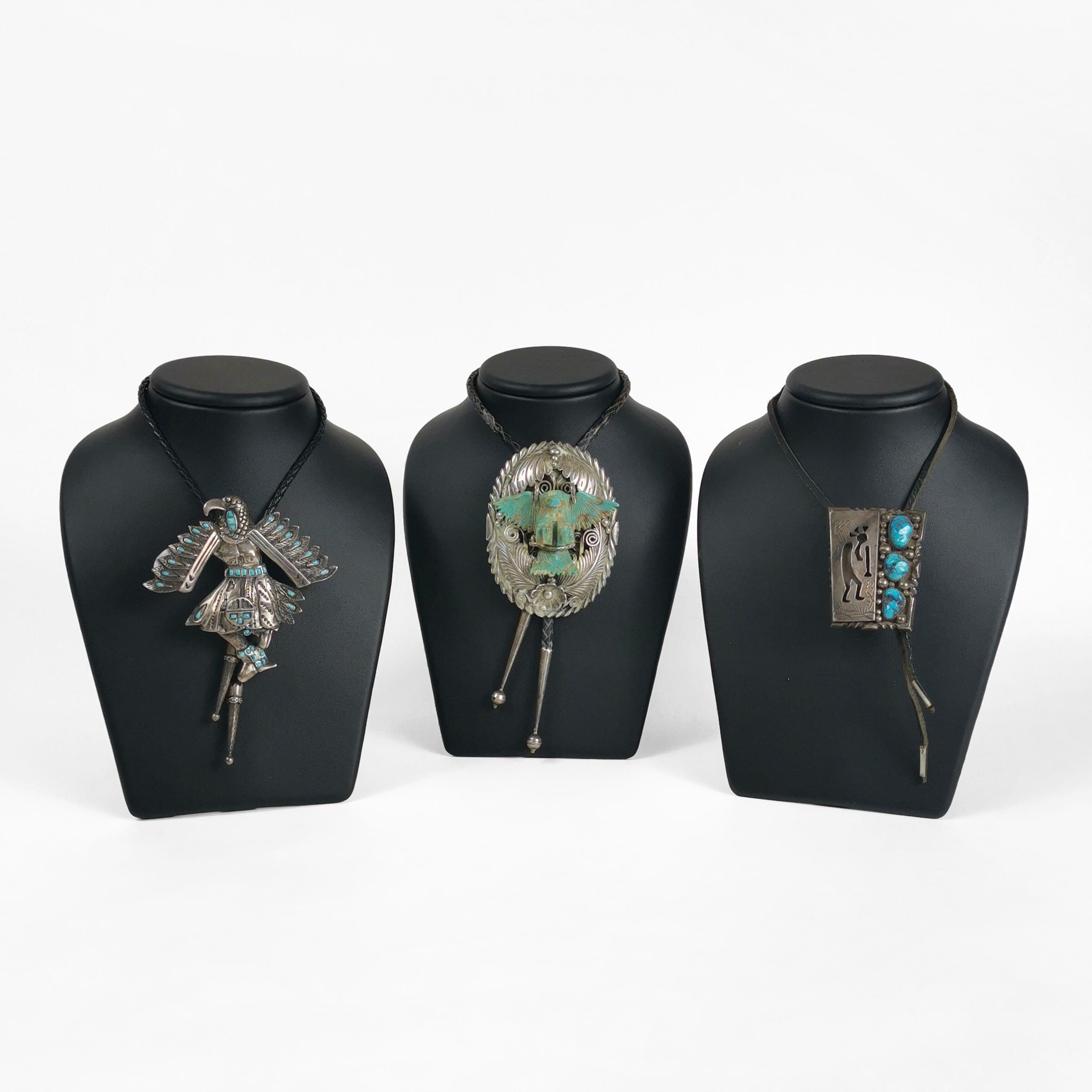 4560. Suite de 3 pendentifs sur cordons, Navajo, Indiens d'Amérique du Nord