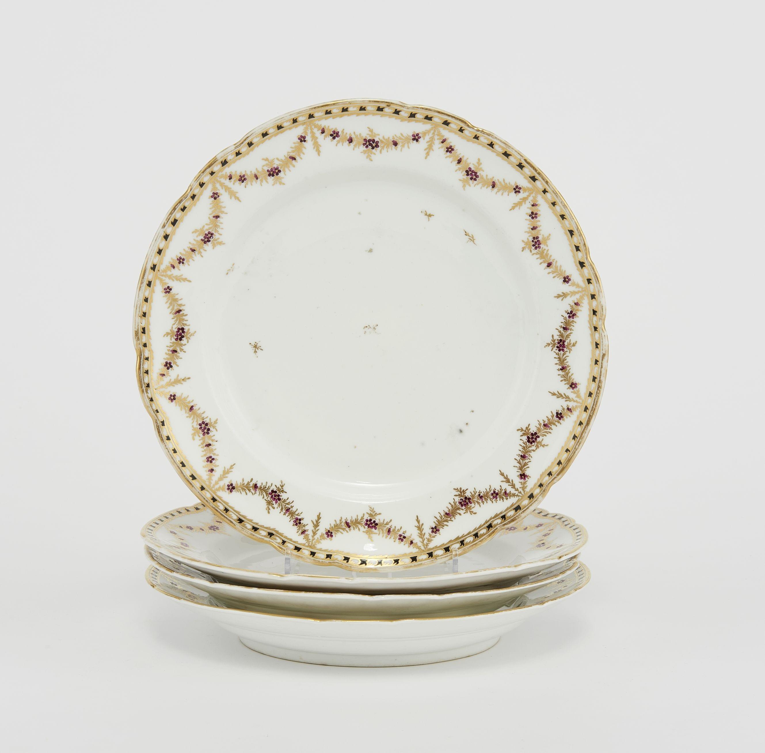 4217. Suite de 4 assiettes à décor Reine de Naples