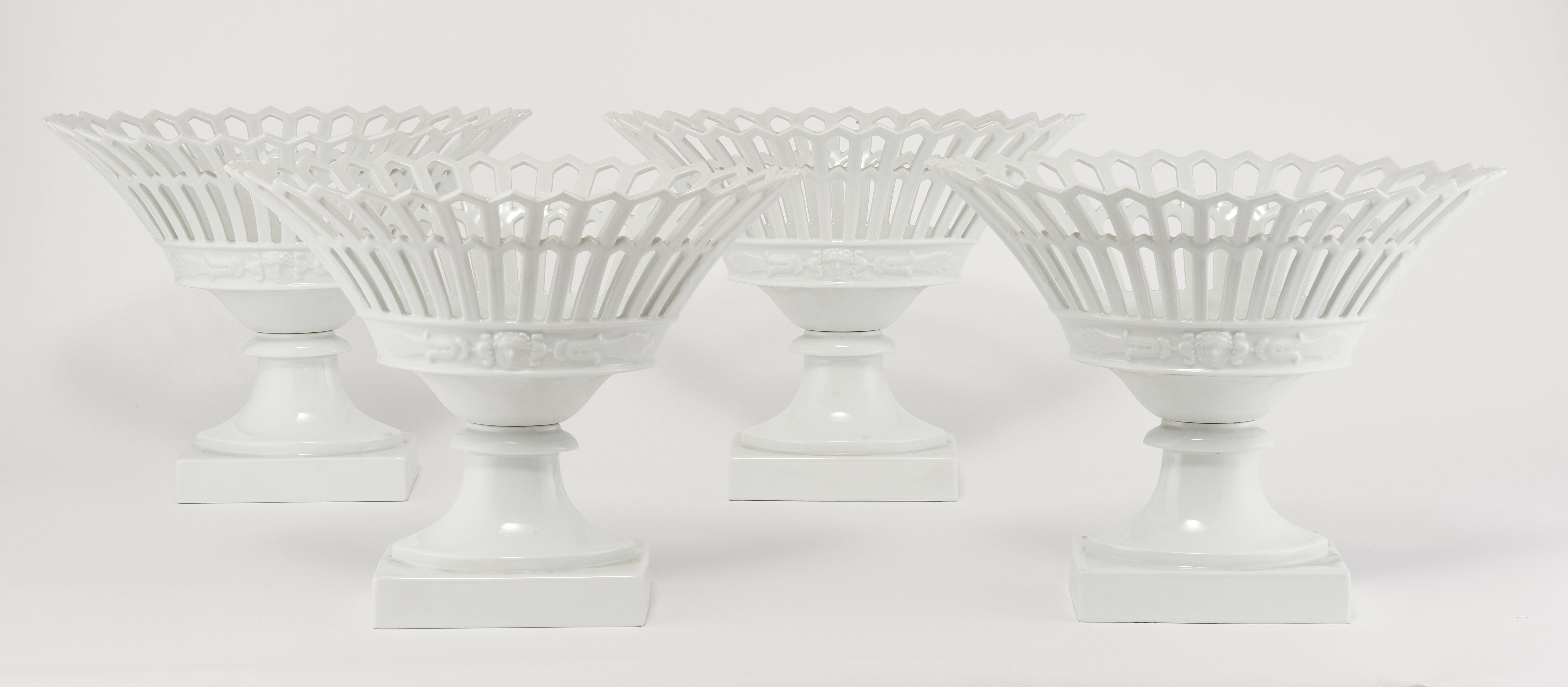 537. Suite de 4 coupes navette ajourées sur piédouche de style Empire