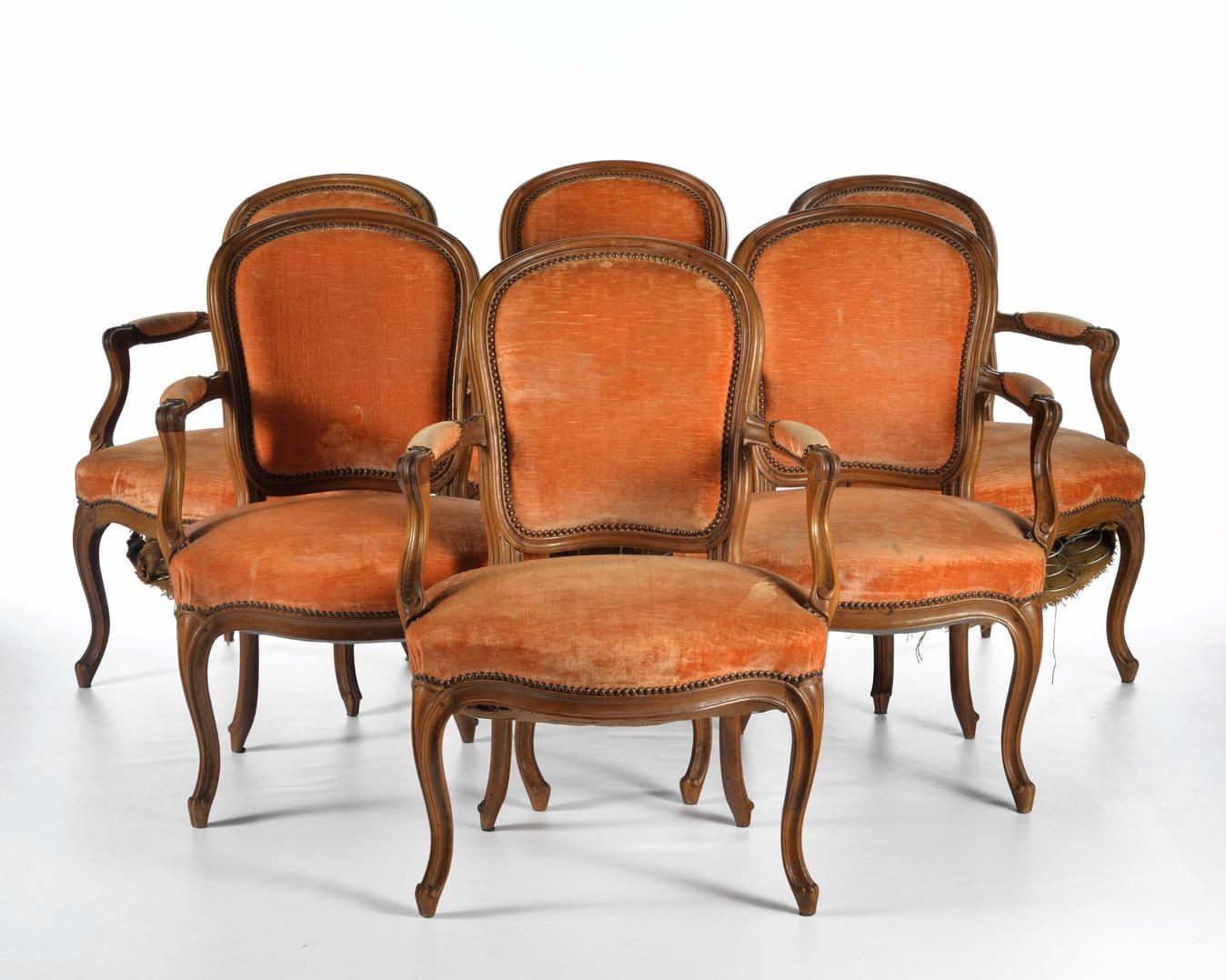496. Suite de 6 fauteuils cabriolet d'époque Louis XV
