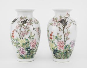 Porcelaine émaillée polychrome à motifs d'hirondelles et fleurs,...