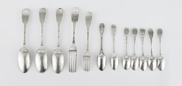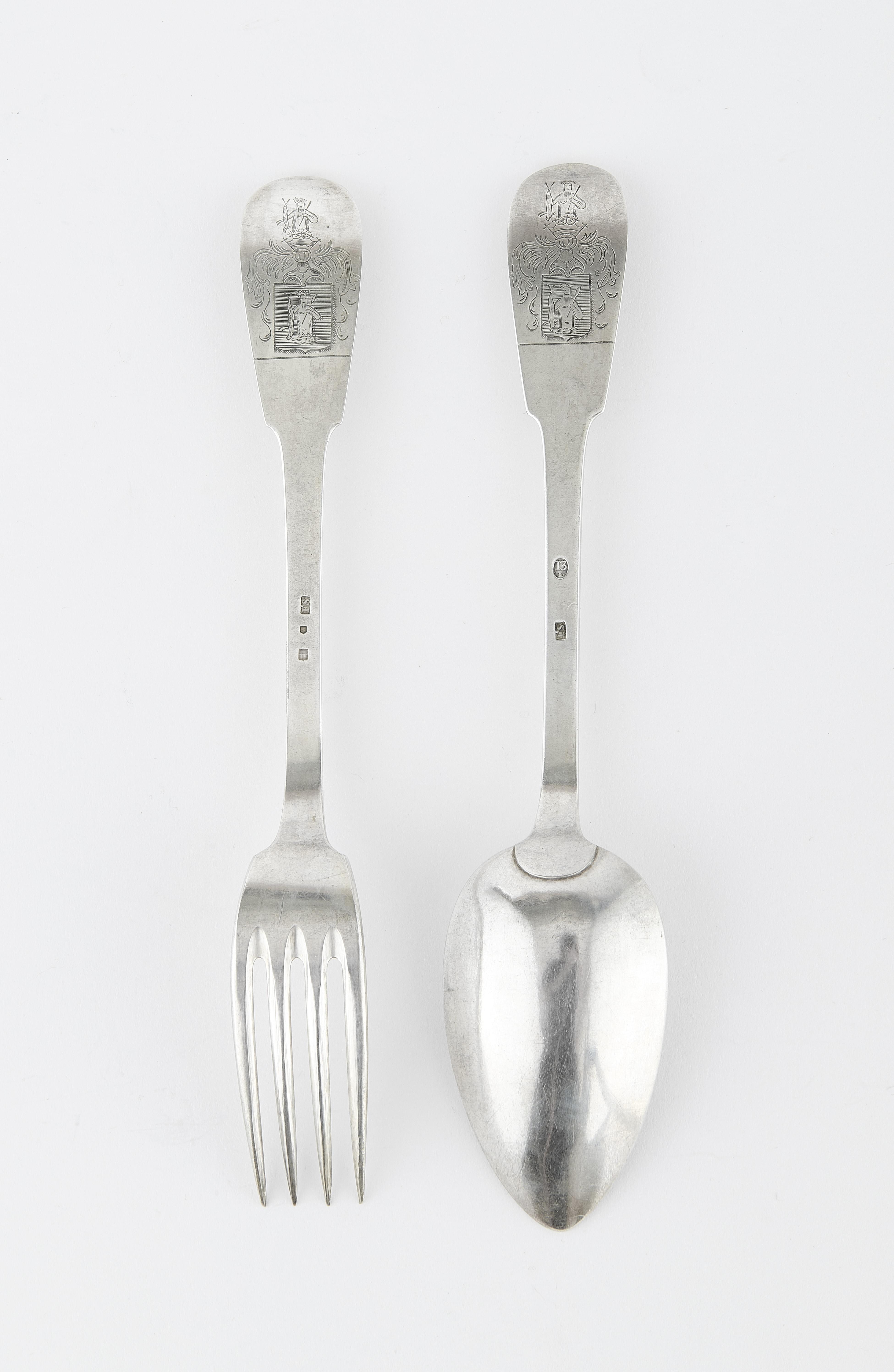 472. Cuillère de baptême à manche lansquenet portant un bouclier aux...
