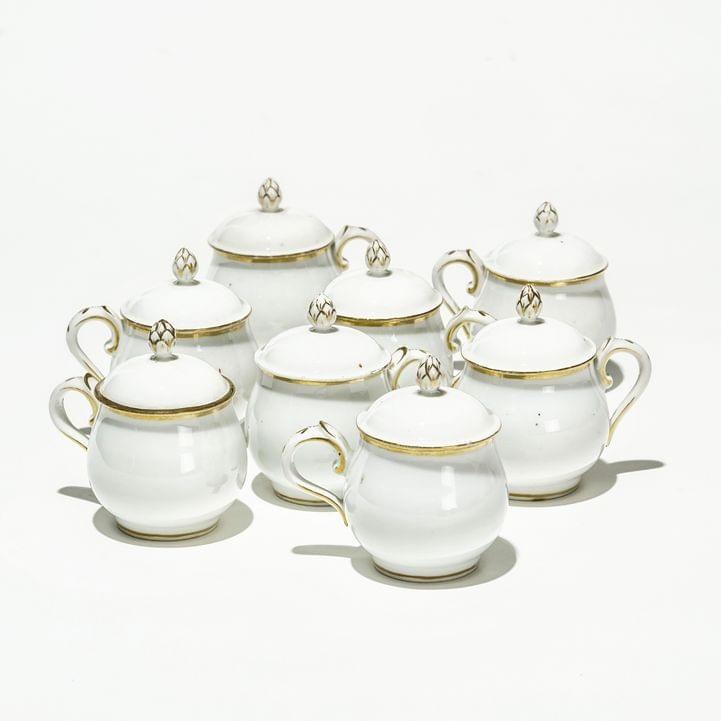 155. Ecuelle ovale couverte sur présentoir de style Louis XV à bordur...