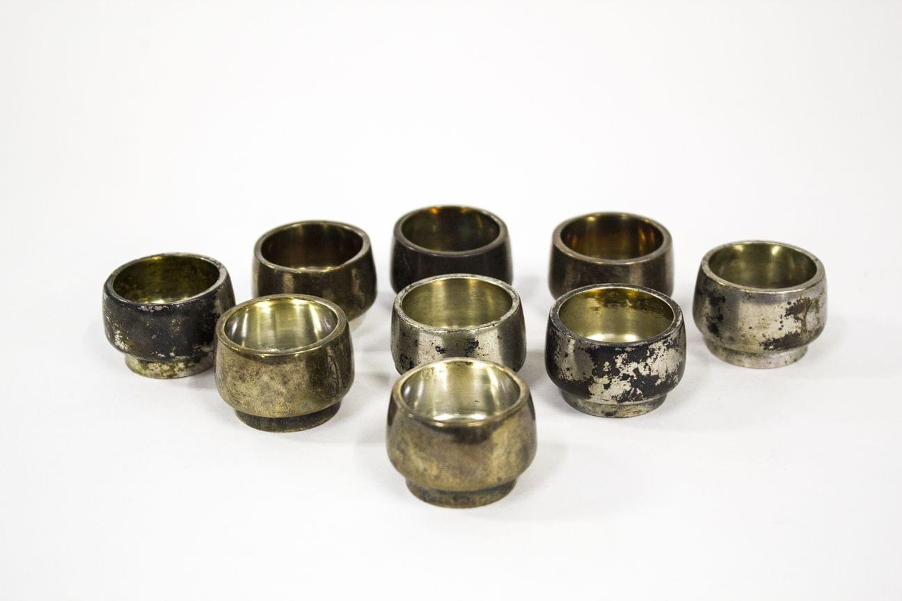 3677. Suite de 9 salerons monogrammés de différents chiffres