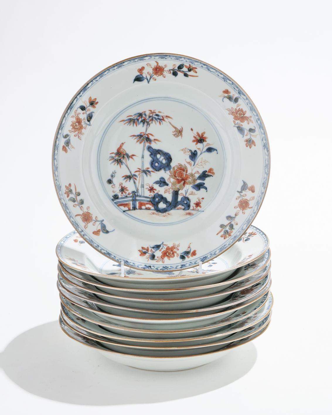 757. Suite de dix assiettes Imari, Chine, Compagnie des Indes, XVIIIe s