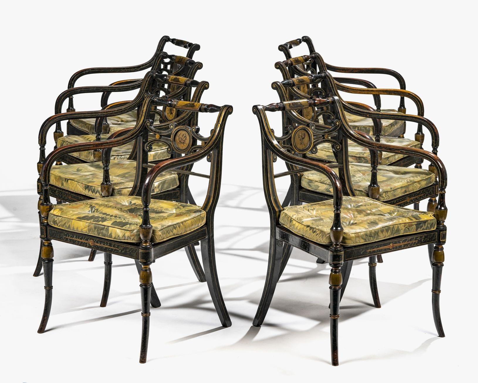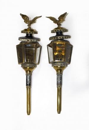 436. Suite de quatre lanternes hexagonales surmontées d'un aigle