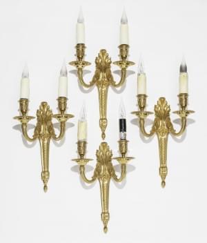 430. Suite de quatre appliques à deux lumières de style Transition