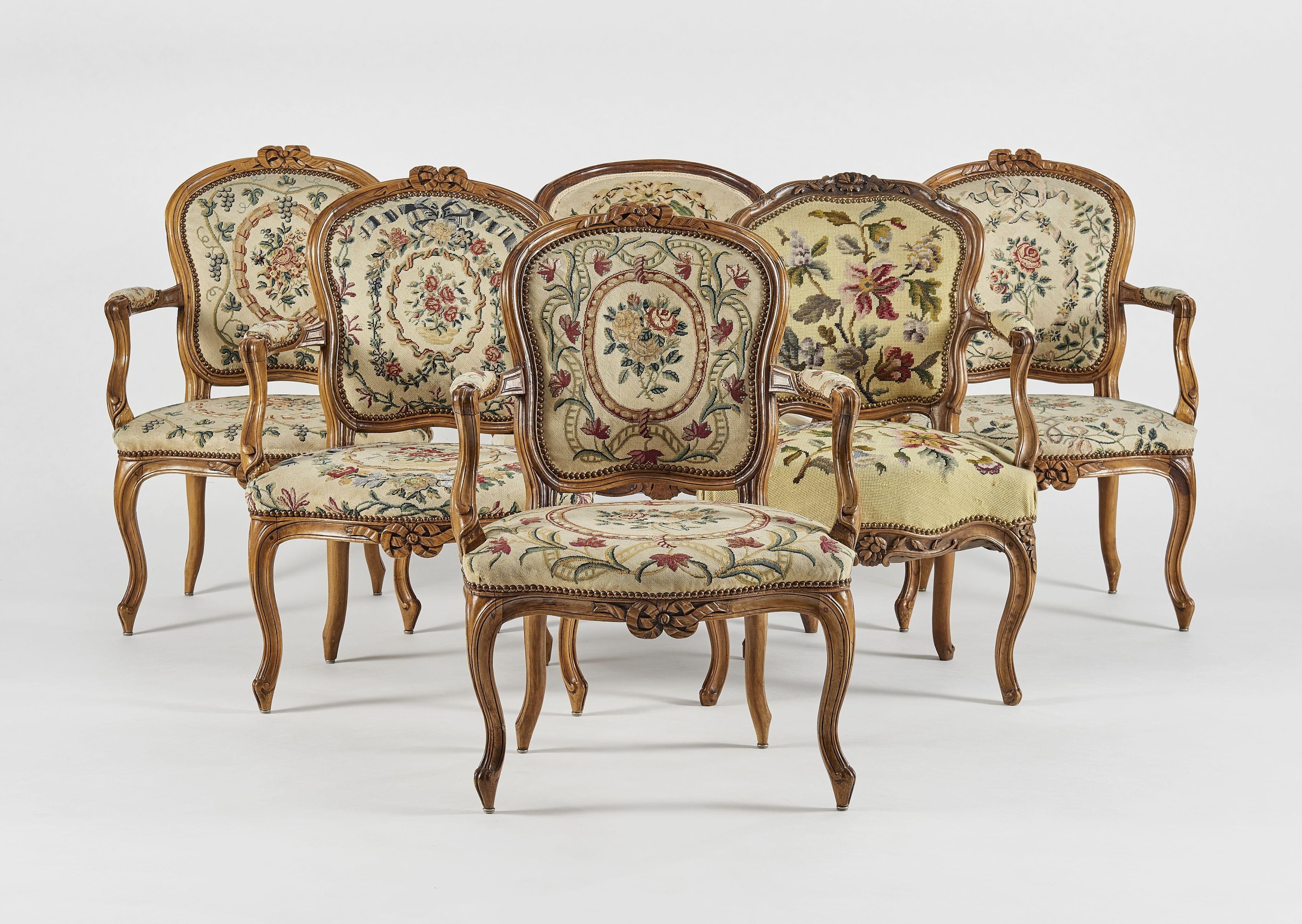 Dossier cabriolet, bois au naturel, garniture aux petits points. Provenance: collection Pernet-Villaverde