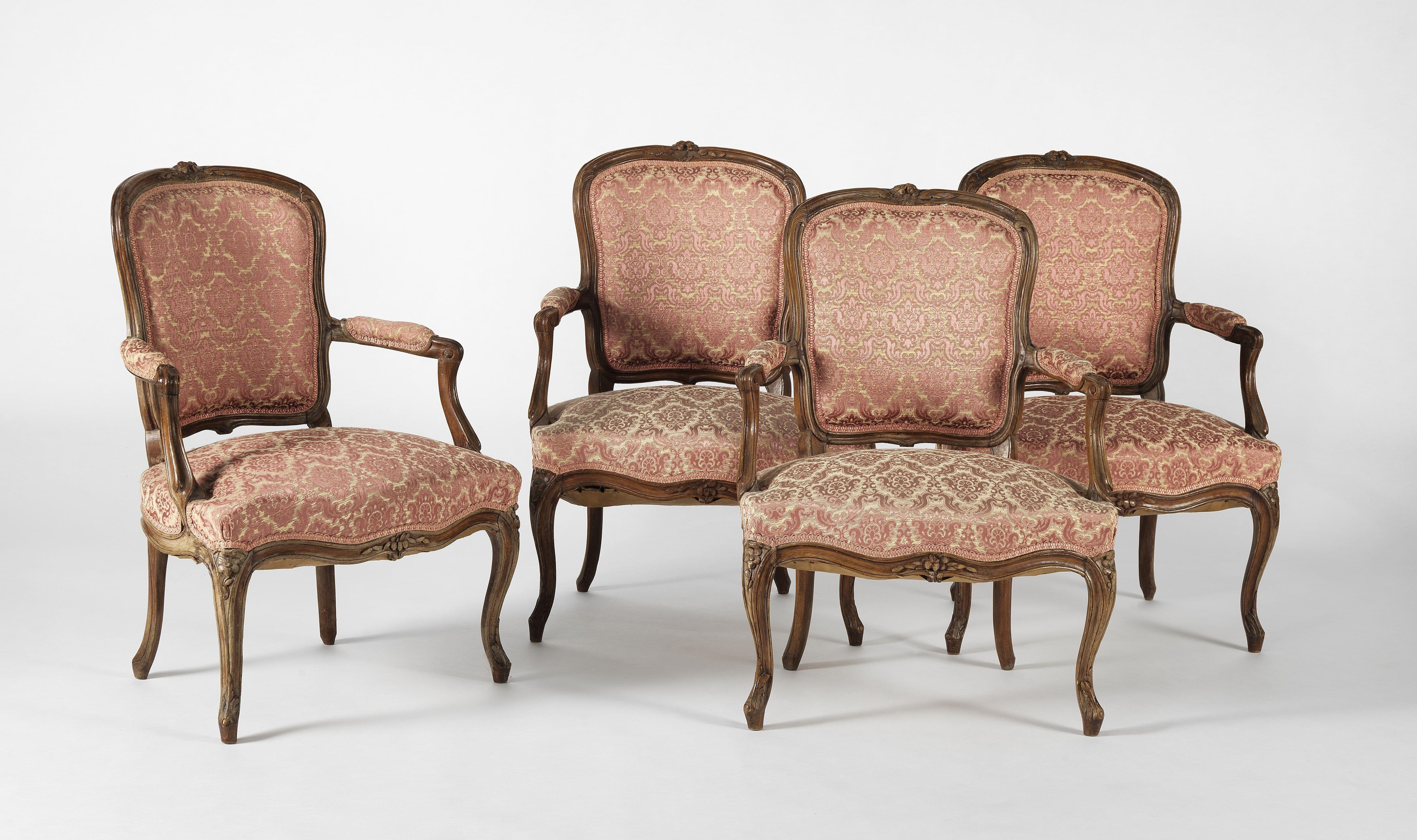 4959. Suite de quatre fauteuils cabriolet d'époque Louis XV