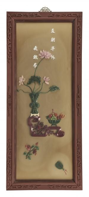Cadran émaillé blanc centré d'un décor peint de guirlande de fle...