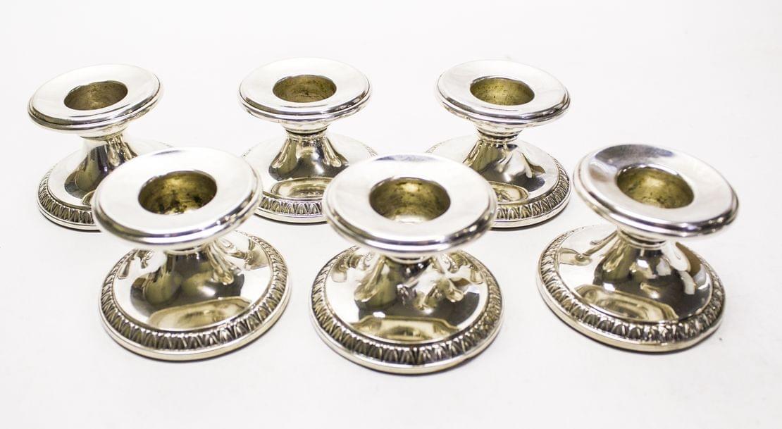 3220. Suite de six bougeoirs bas à bordure de feuilles d'eau