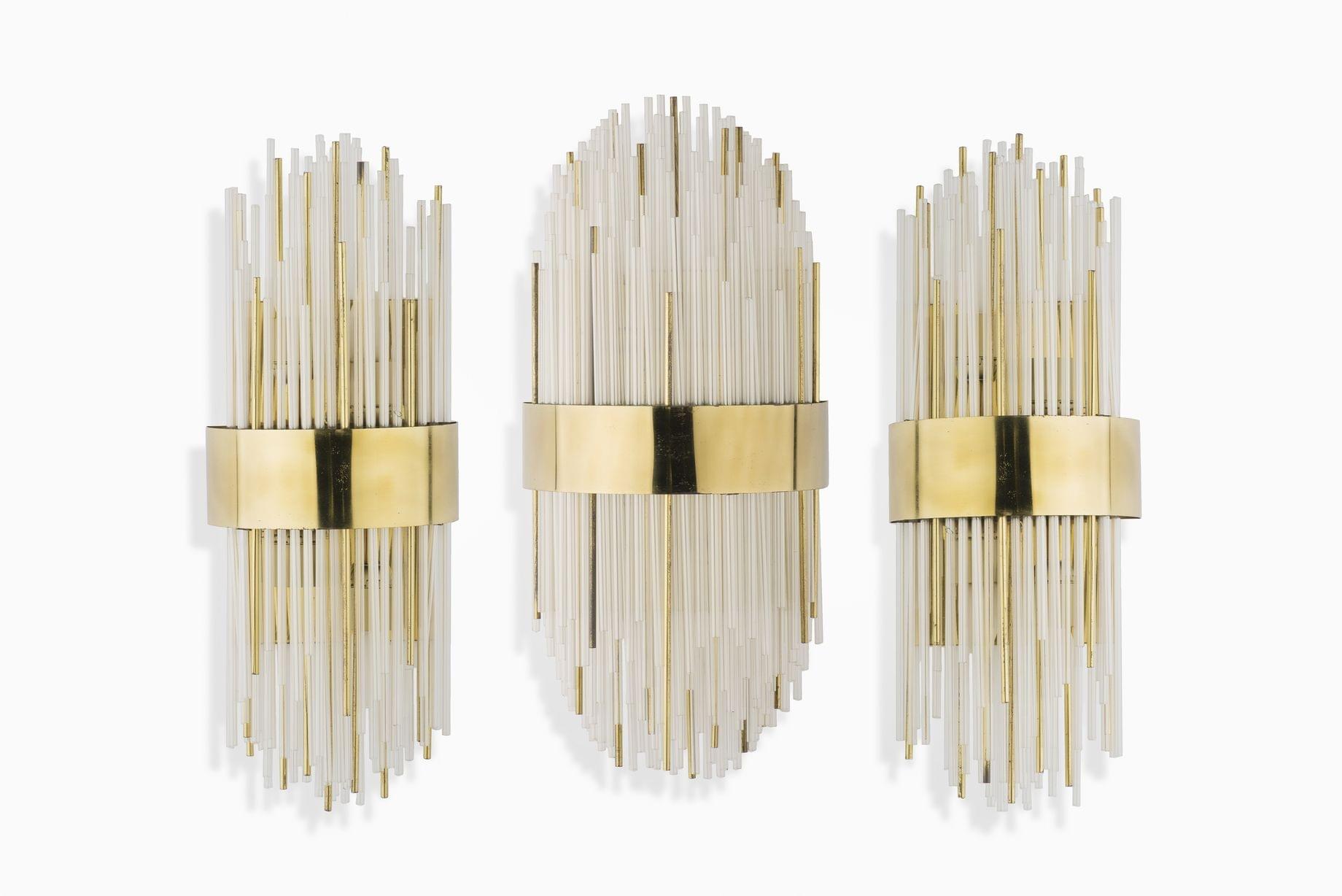 Tubes de verres et de laiton doré, laiton doré, Italie, circa 1970, H 56 cm