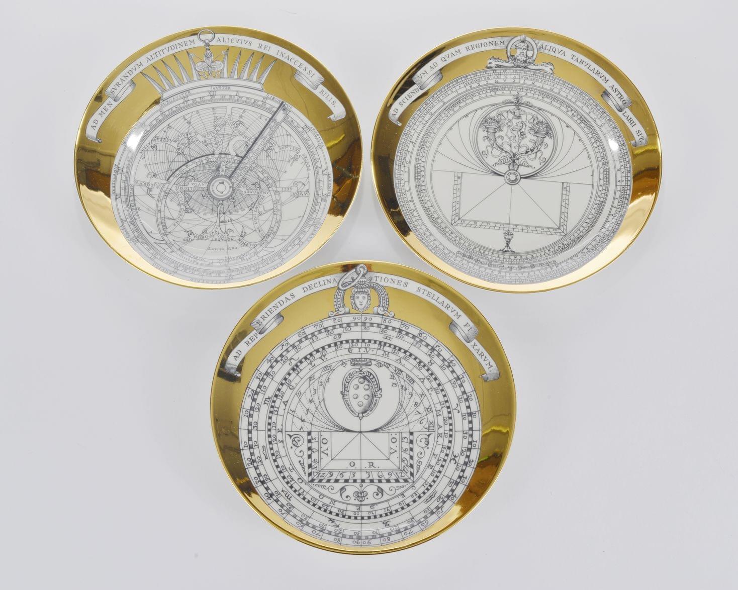 197. 12 assiettes creuses festonnées à bordure de filet et ruban ryth...