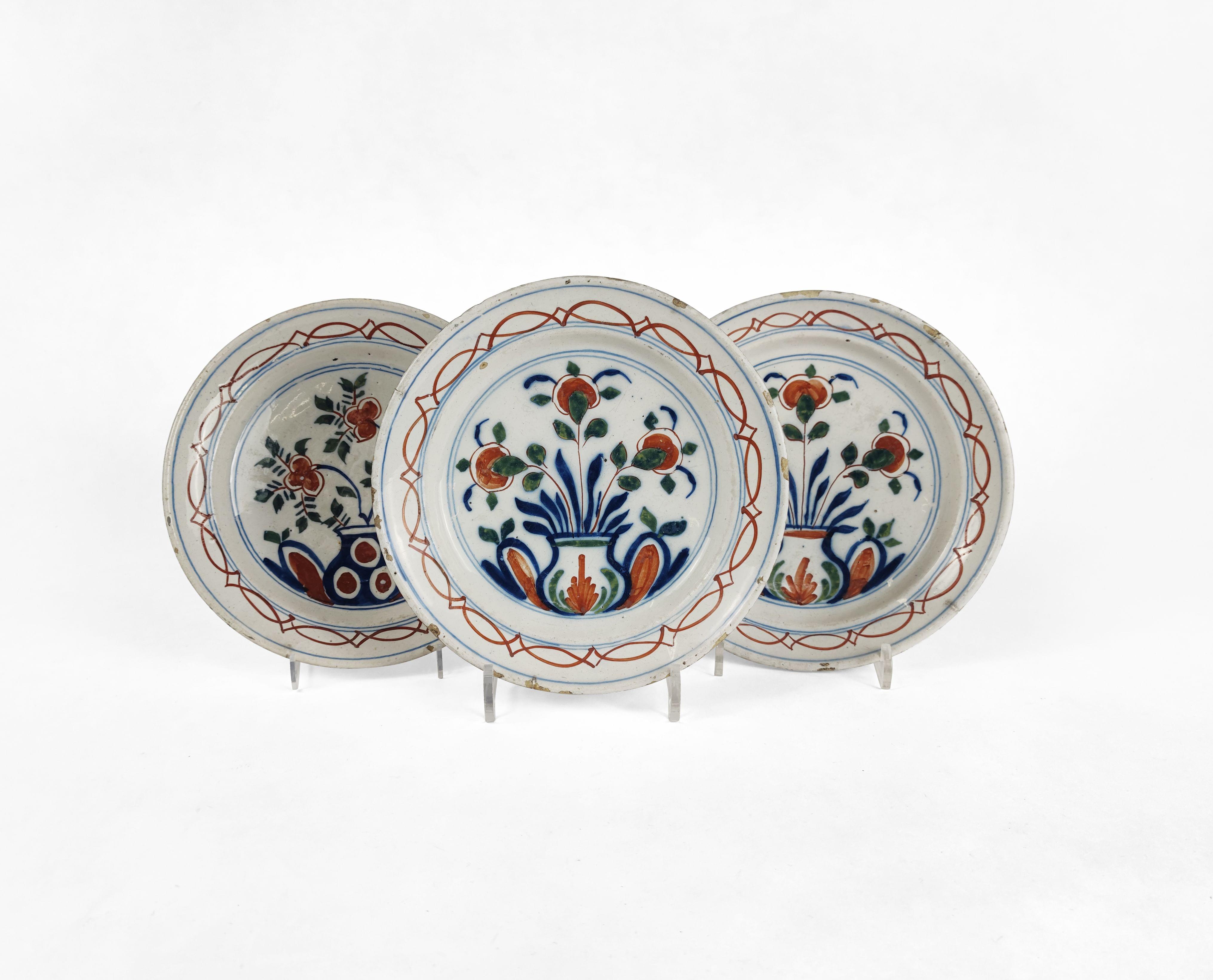4154. Suite de trois assiettes, Delft, XVIIIe s