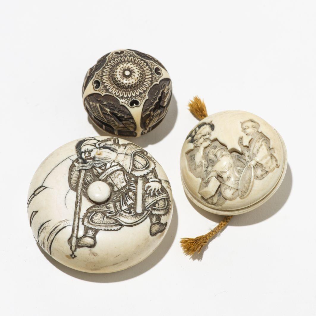 302. Bracelet manchette de trois rangs de perles alternés de motifs s...
