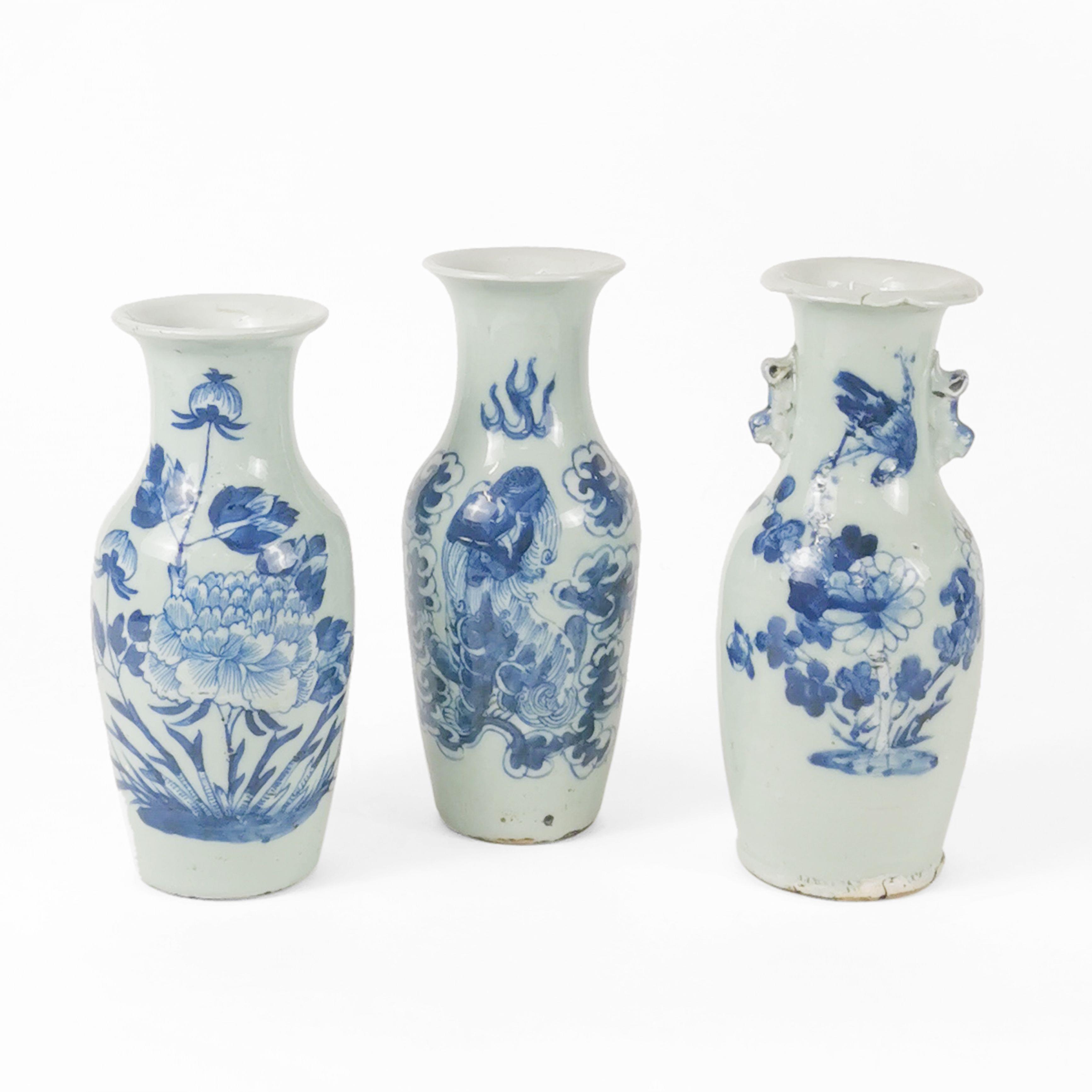 Porcelaine émaillée bleu blanc à décor de fleurs, H de 24 à 25 cm