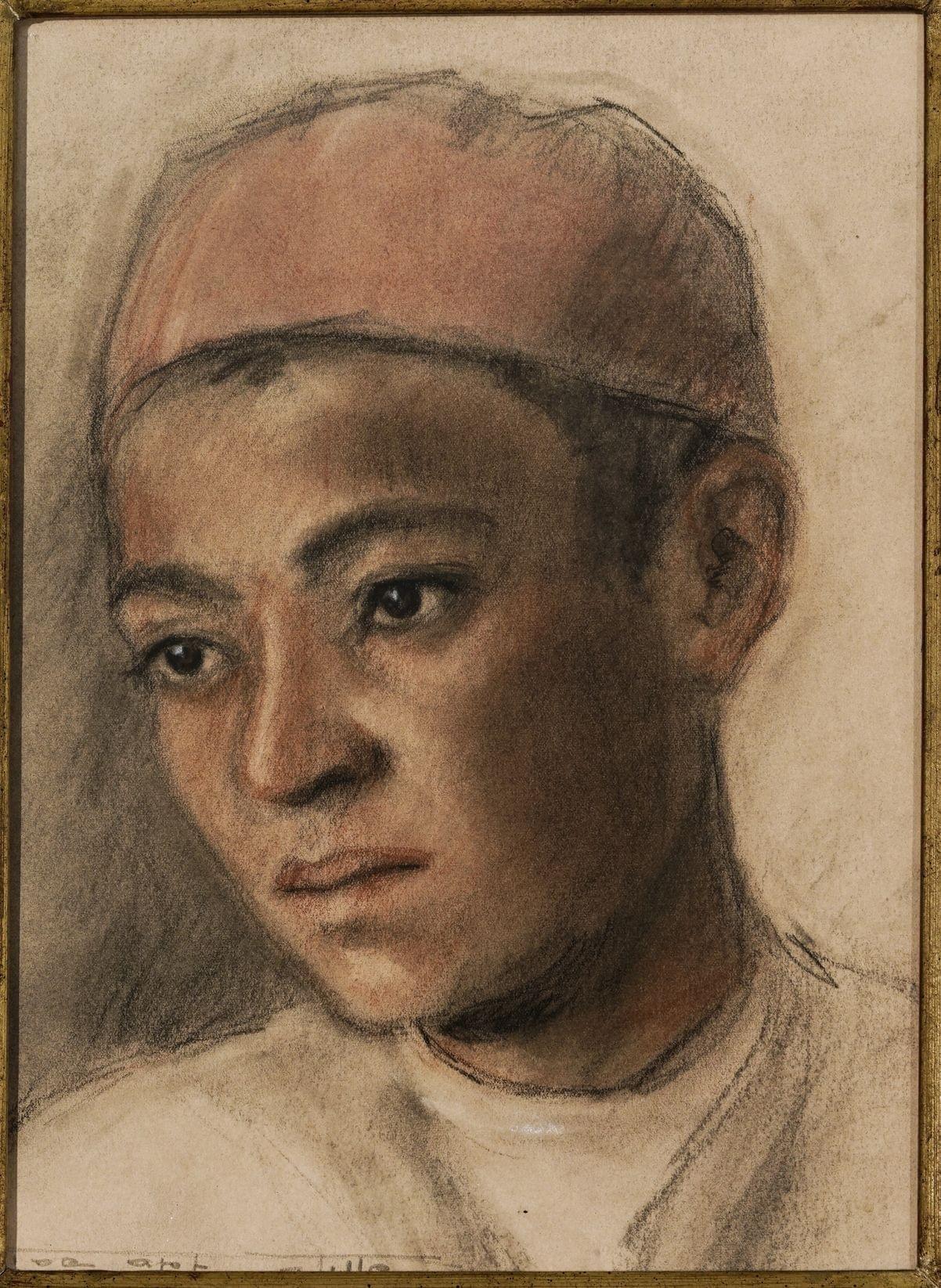 Portrait d'homme à la canne, pastel sur papier, 46x40 cm. Collec...