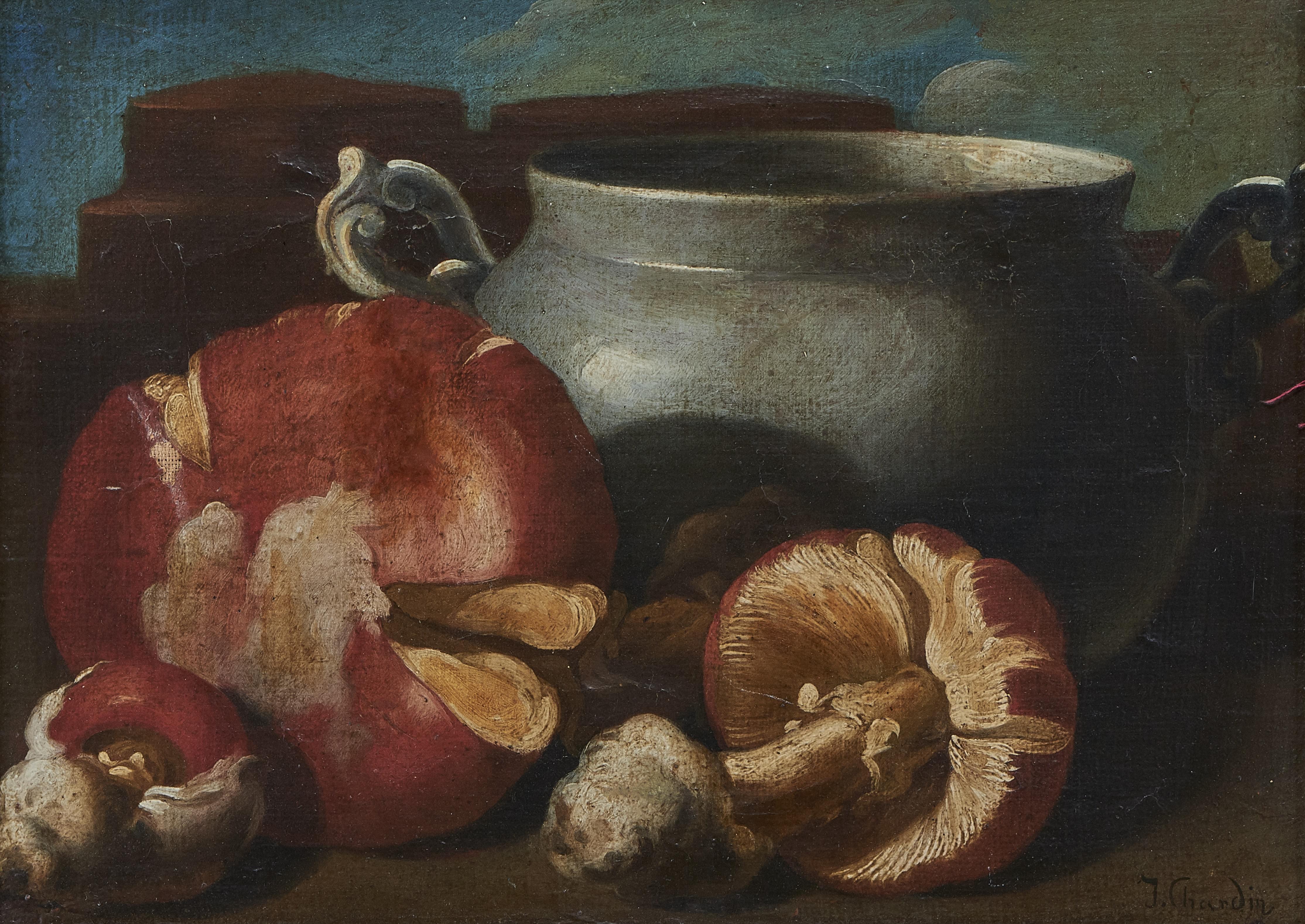 Nature morte aux champignons, huile sur toile, 27x38 cm