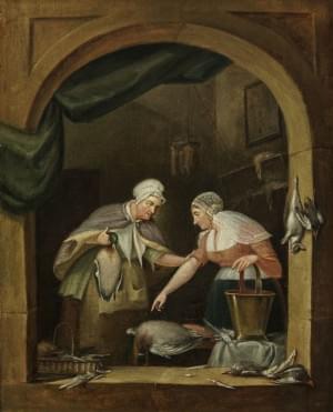 La marchande de volailles, huile sur toile signée, 38,5x30 cm