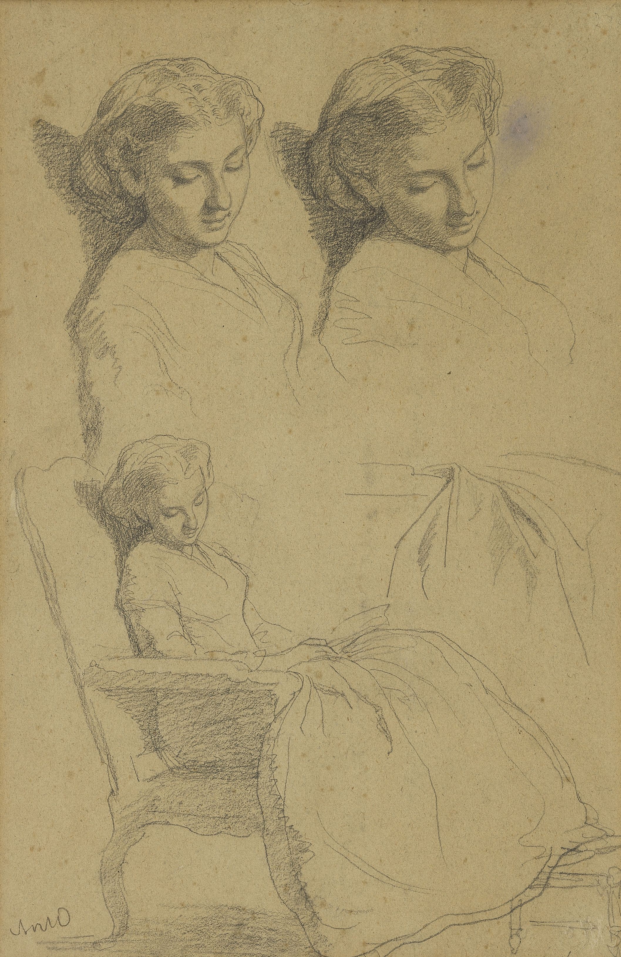 Etude de femme endormie, crayon sur papier, signée, 41x27 cm
