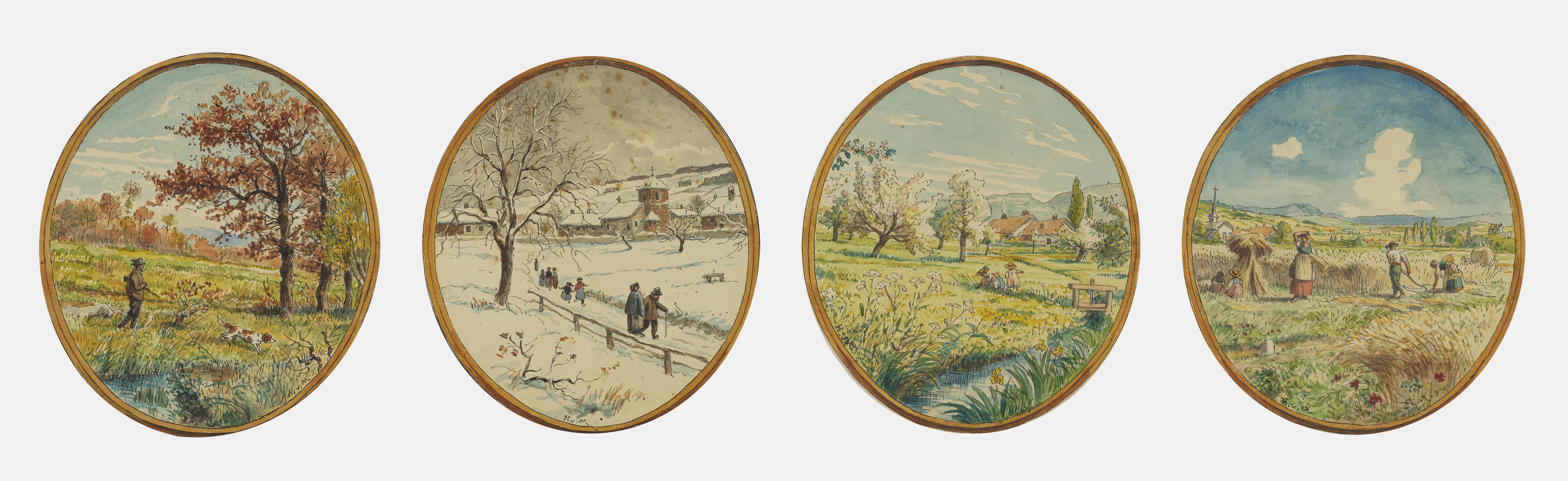 Les Quatre Saisons, suite de quatre aquarelles sur papier, monog...