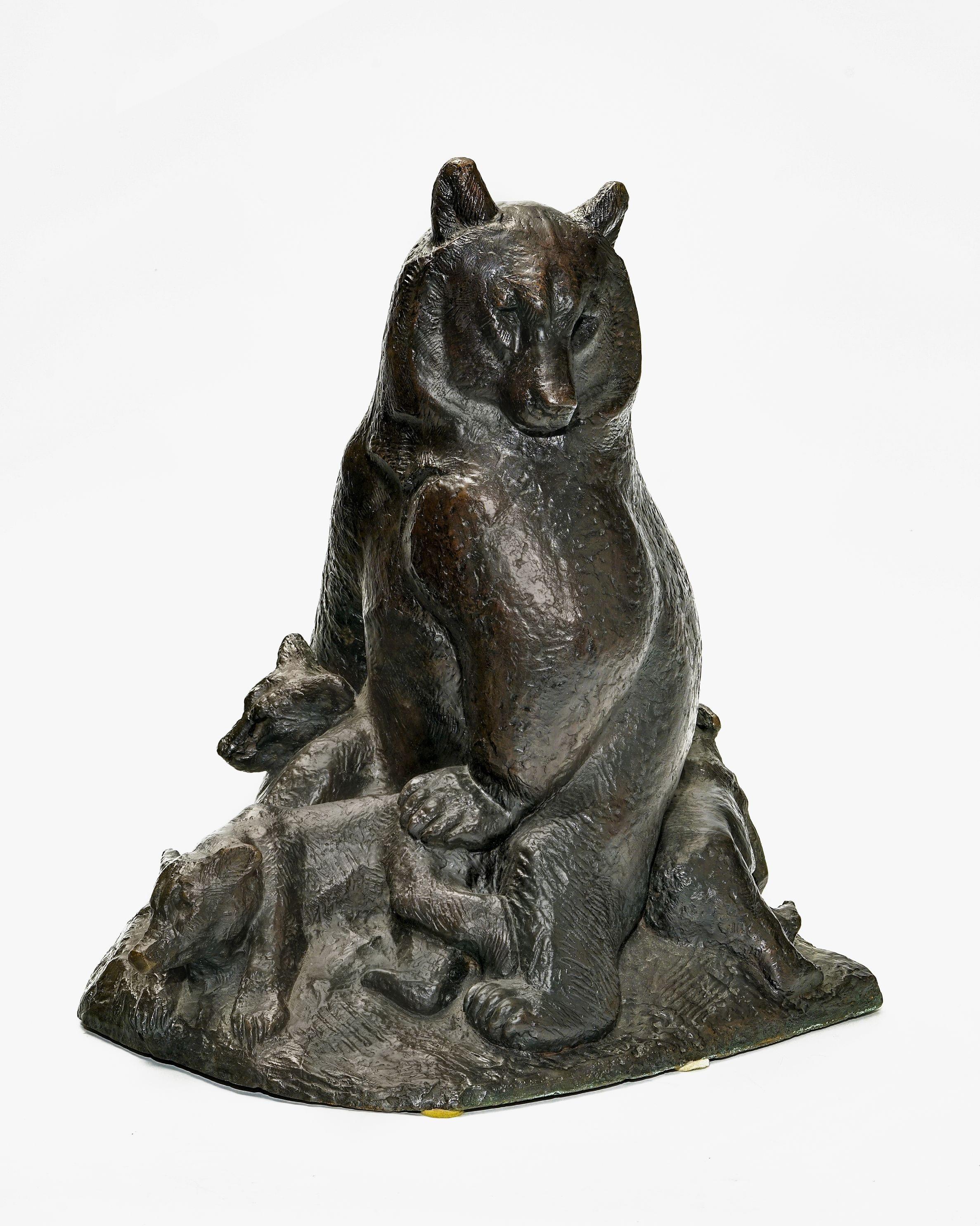 Ours et ses petits, bronze à patine noire, signé, H 51 cm
