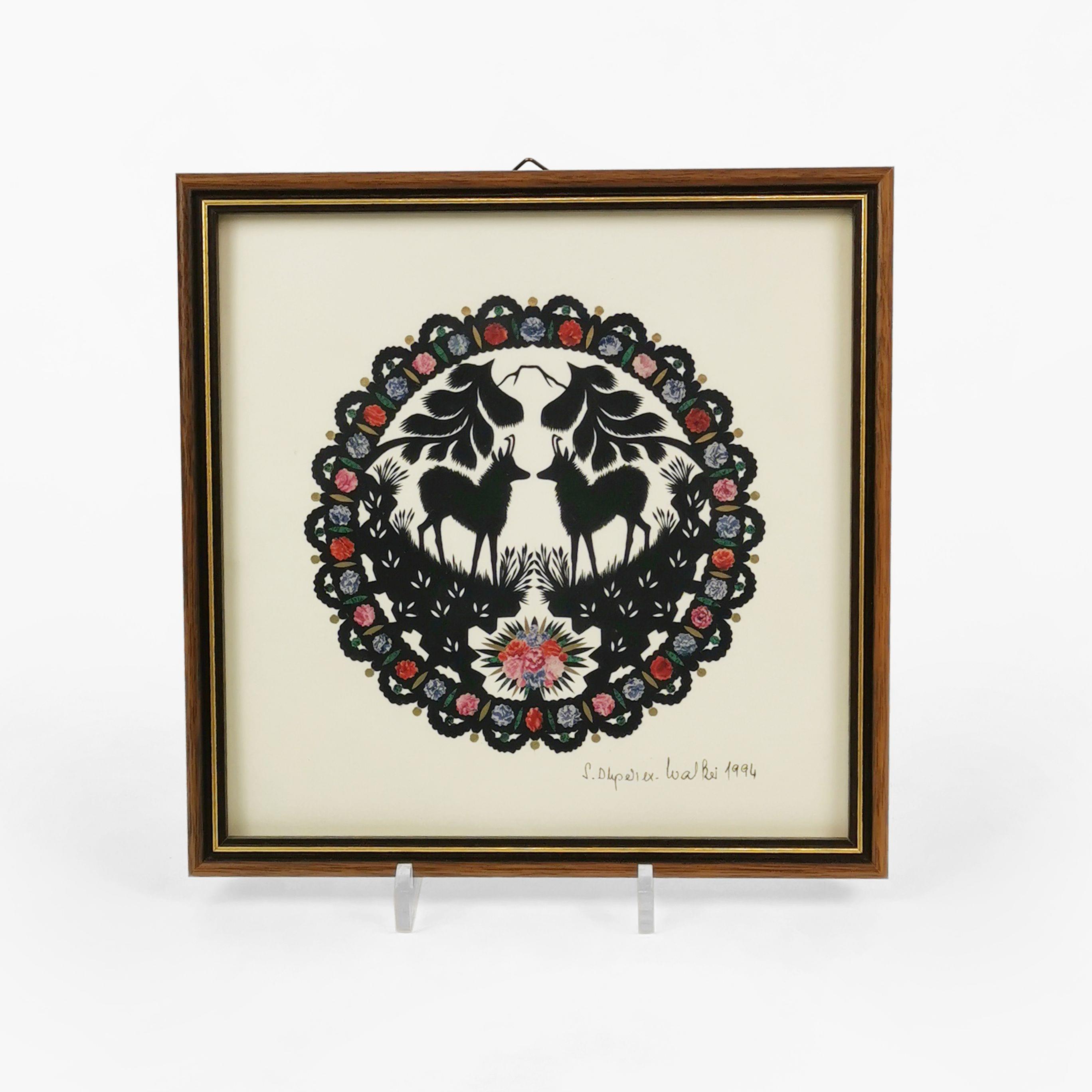 Silhouette à la guitare, peinture sous verre, 17x13 cm