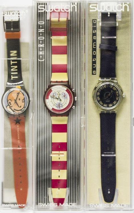 Lot de 3 montres, dont une Musical Paulo Mendoça, une Tintin, u...