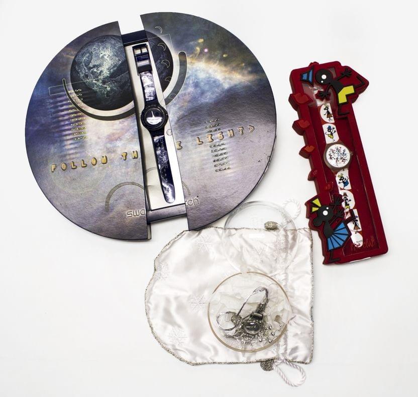 Lot de 3 montres, dont une Boule de Noël (sac blanc), une Pop Time for a Kiss, une Follow the Light
